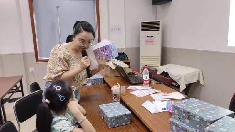 活动开始,志愿者老师声情并茂地讲述了绘本故事《奶奶,没关系的》,大家非常认真地听着老师讲解,沉浸在故事里,并积极参与互动问答。故事结束,老师又开始带领孩子们一起动手制作手工。孩子们拿着发放的材料包,热情高涨,纷纷动起手来,在相互交流、相互帮助下,很快就完成了制作。活动现场气氛活跃,孩子们看着自己的作品,脸上露出了开心的笑容。