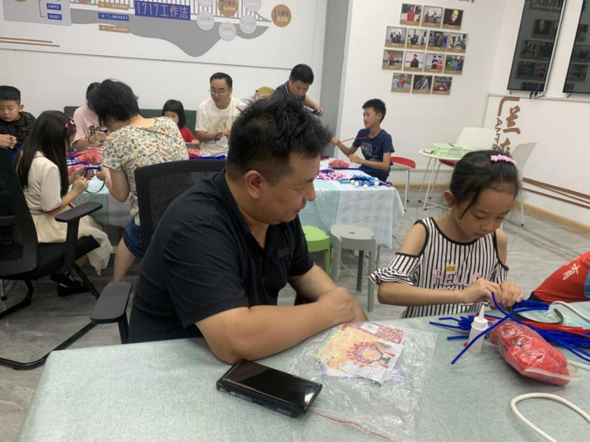 此次制作的是“穆桂英盔头”。穆桂英是中华民族历史上一位杰出的女将,她英勇抗击契丹入侵,成为了后人传颂的英雄人物,深受人民群众的敬仰和爱戴。虽然是制作简易的盔头,但是步骤一点也不简单,绕线、粘珠子、粘绒毛等都需要非常地耐心和细心,可能对妈妈们轻而易举,但是对于爸爸们来说是非常大的考验。经过整整1个小时制作,企鹅爸爸和孩子们相互配合并顺利完成作品后,所有的辛苦和累都消失,只有满满收获的喜悦,现场也洋溢着浓浓的爱意。孩子们更是对自己的盔头爱不释手,戴在头上想来唱一曲。