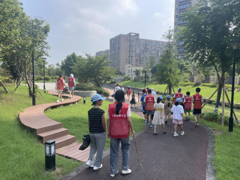 在活动的开展中,小小志愿者们一个个不惧酷暑,在社区工作人员的带领下热情高涨的拿着垃圾夹等工具,清理草坪里的垃圾,夹起地面上的烟头,不放过任何一处垃圾。他们一个个身穿红马甲,辛勤劳动的场面成为了小区里最靓丽的风景。经过近一个小时的战斗,小志愿者们将小区卫生环境清理得干干净净,焕然一新。