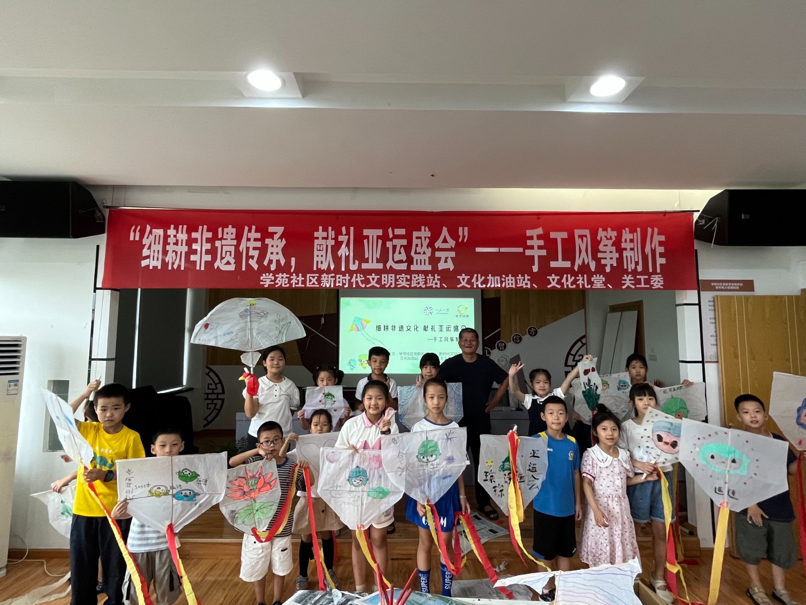 为了将民族非遗文化和亚运精神结合起来,提高青少年民族荣誉感和爱国情怀,8月29日,学苑社区新时代文明实践站、文化加油站、关工委联合开展“细耕非遗文化 献礼亚运盛会”手工风筝制作课程,辖区20名青少年参加。