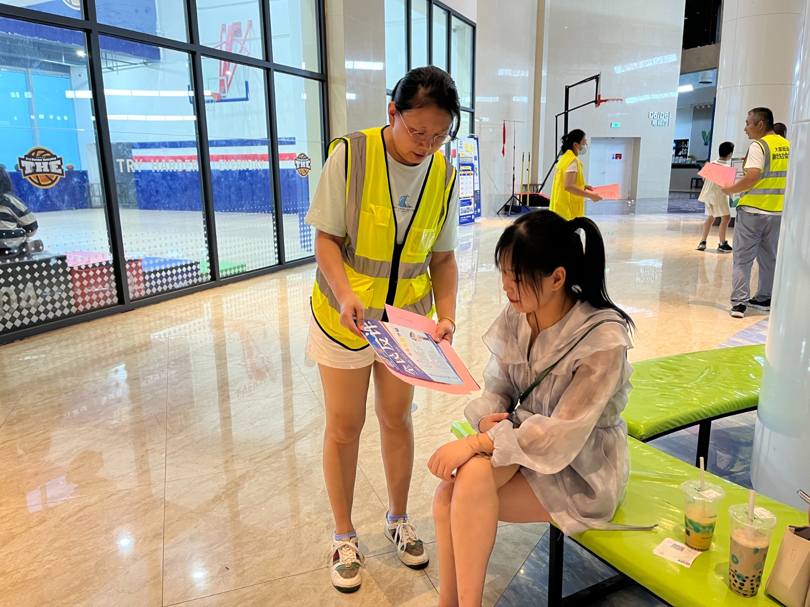 “女士,你是否曾收到诈骗短信?单子上的八大反诈套路您可以看看。”观影前,反诈小队的队员们为前来观影的群众发放反诈宣传单、讲解电信网络诈骗的危害以及防范电信网络诈骗相关知识,引导大家注册反诈APP,提醒群众擦亮眼、绷紧弦、防诈骗。