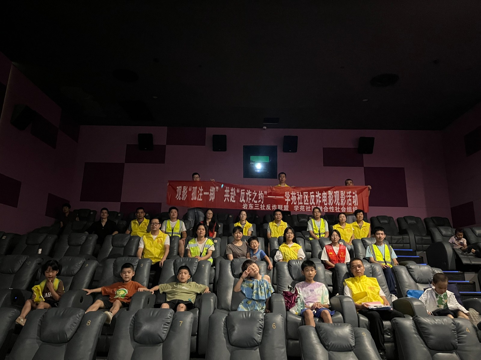 8月26日晚,岩东三社反诈联盟组织学苑社区融合性社会组织的反诈小队及队员家属走进影院,共同观看反诈电影《孤注一掷》,进一步增强反诈员的法律意识、风险意识和反诈信念。