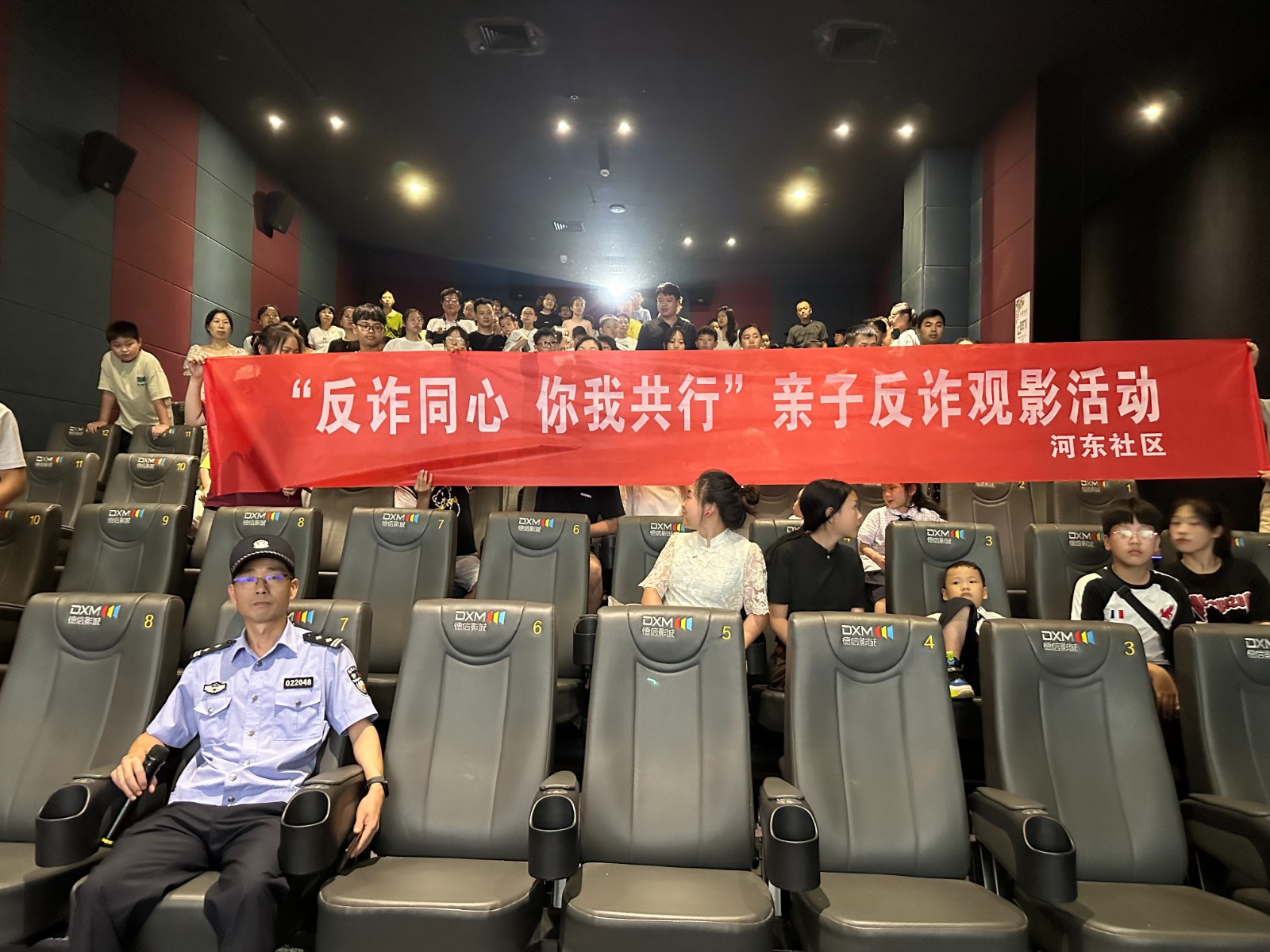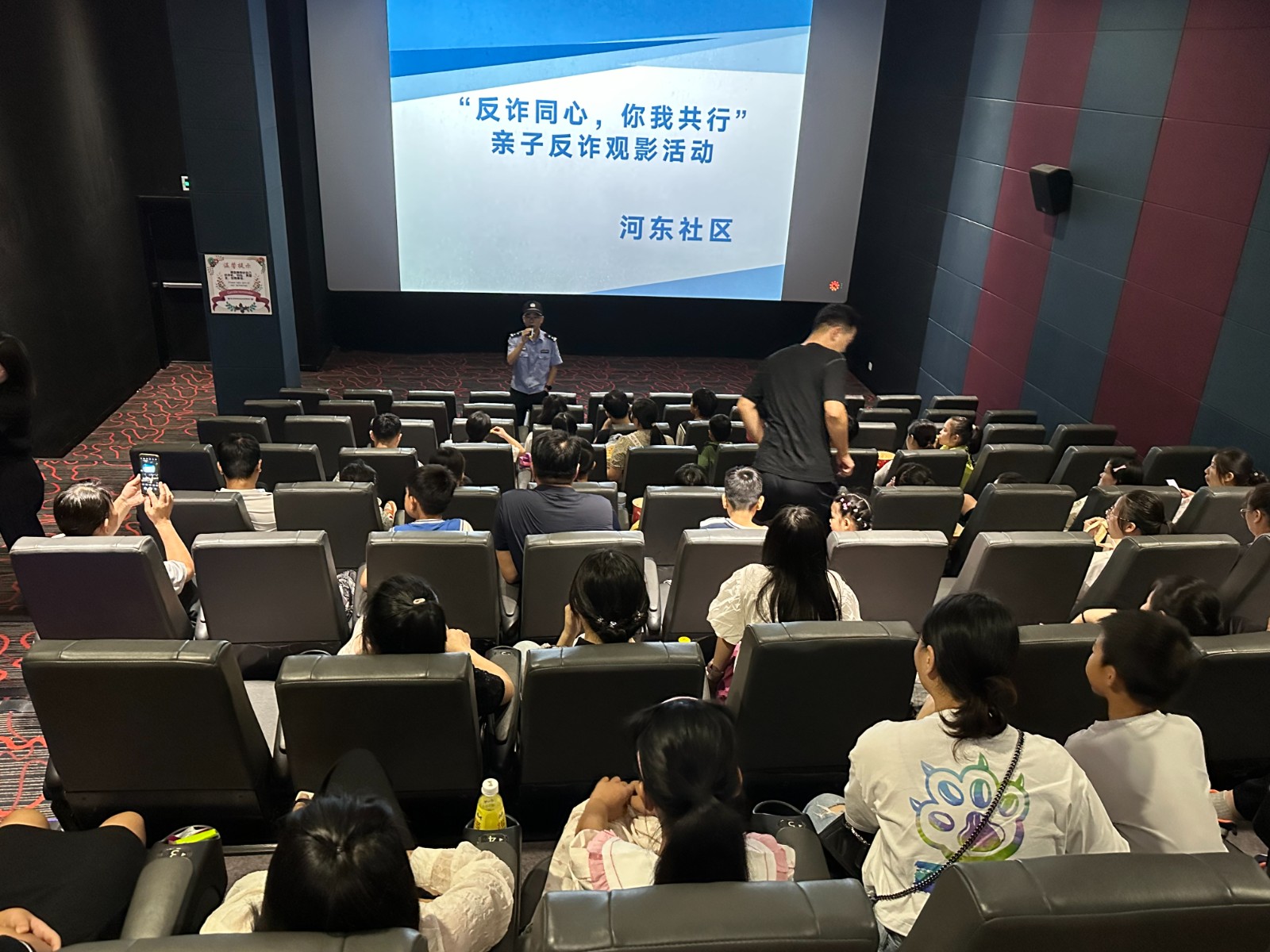 为进一步普及宣传反诈知识,增强辖区群众的反诈意识,829日晚,河东社区联合辖区民警对辖区的青少年学生及家长等90多人走进电影院观看反诈宣传电影《孤注一掷》,宣传反诈知识,受到群众欢迎。