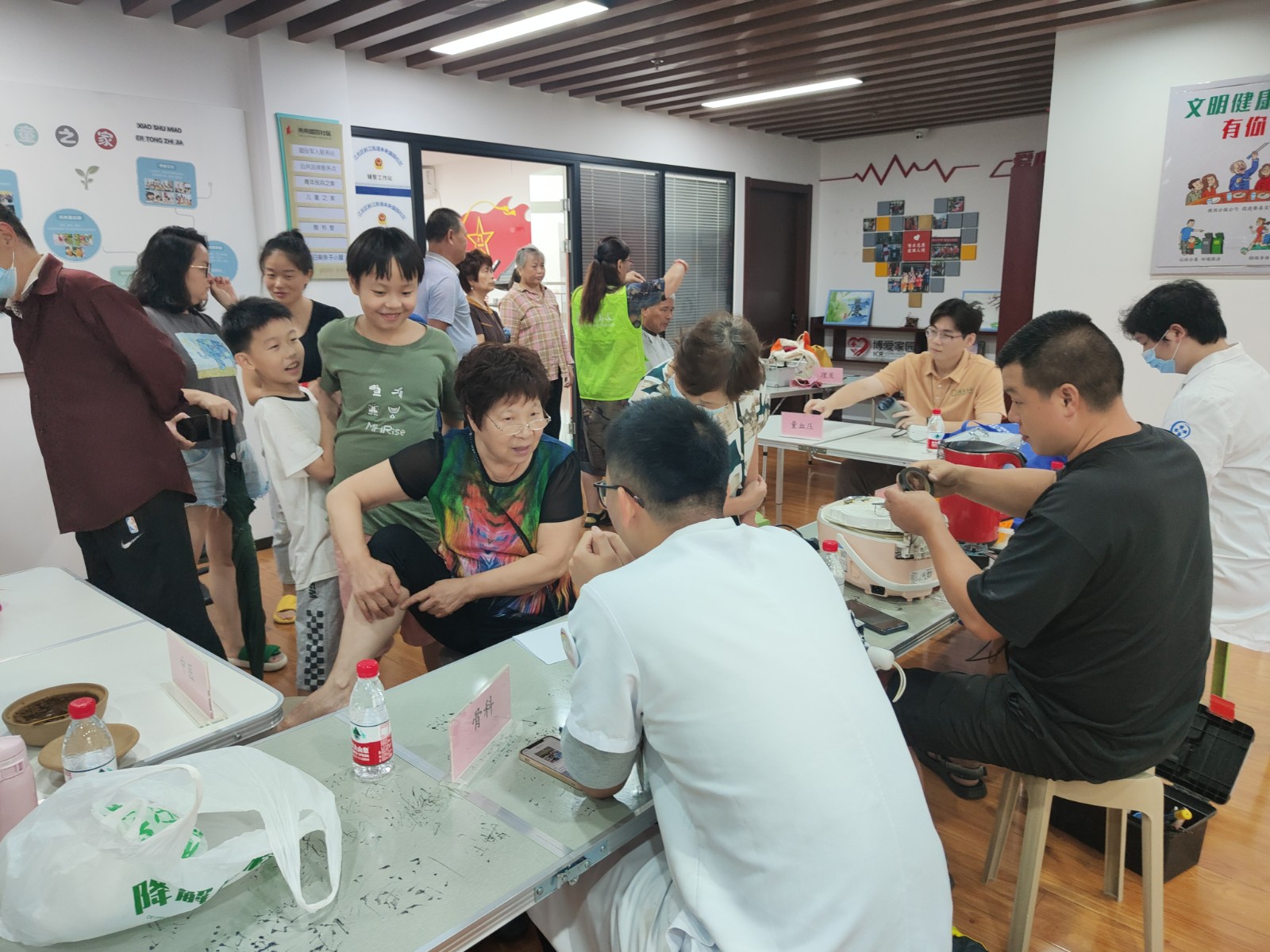为切实了解辖区居民的义诊需求,网格长在线上征集了辖区居民的意见和建议,在这夏季暑期的尾声,最终“中医”和“骨科”成为了呼声最高的义诊项目。为此,宁波市第九医院特别组织了骨科中医科把脉、飞针挑治等治疗手法为辖区居民切实解决了当下身体不适。三伏贴也是当日极为火爆的项目之一。骨科则更受“一老一小”人群的欢迎,不少老年人和孩子陆续在骨科医生摊位前排起了队。