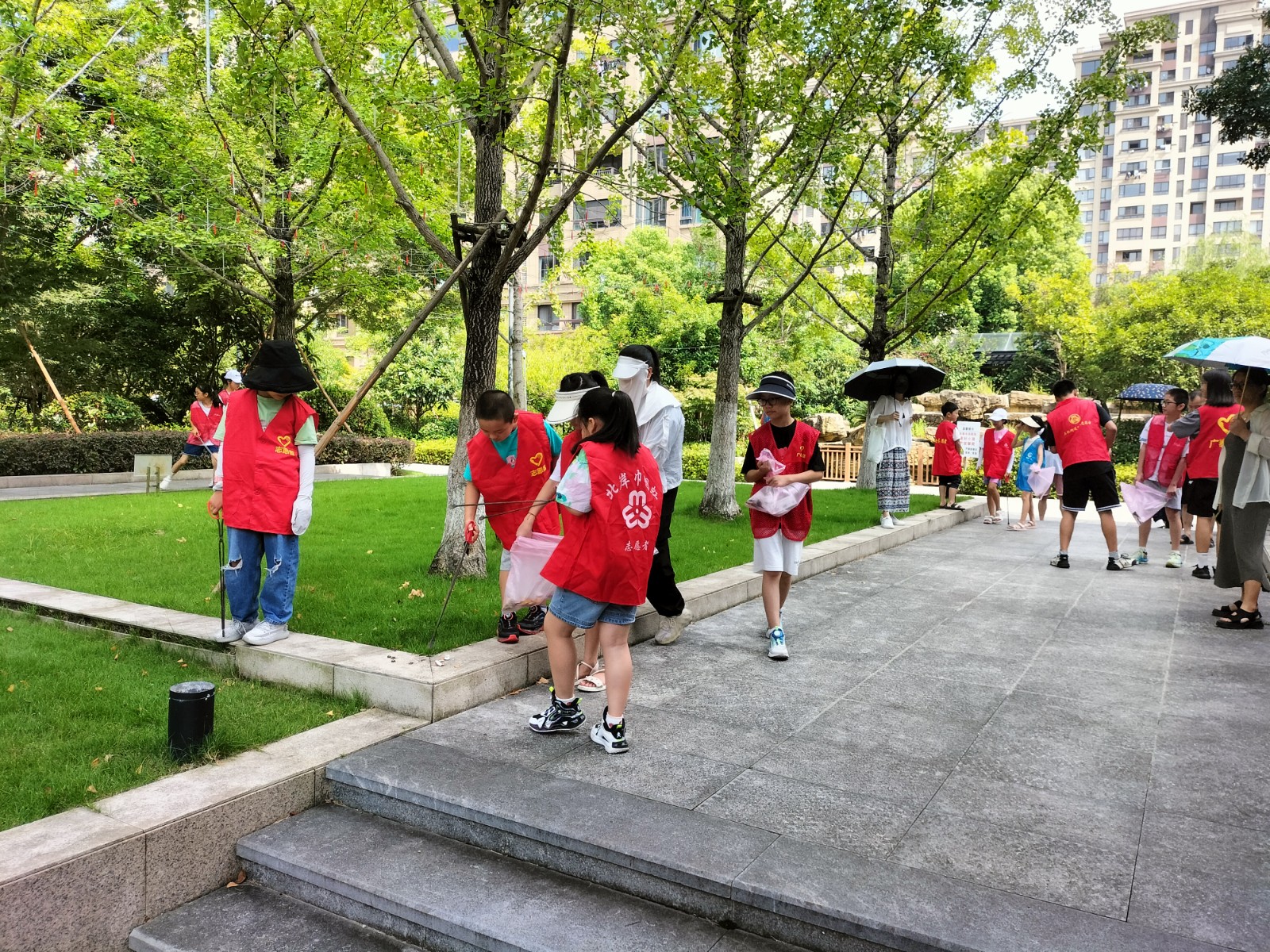 活动伊始,社工从什么是垃圾分类、垃圾分类的意义、垃圾分类标准等方面,向社区参加活动的孩子们普及垃圾分类知识,引导他们从小养成垃圾分类的好习惯。接着孩子们统一拿上垃圾袋、手套、钳子,穿上志愿者服装,进入到小区内捡起了垃圾。捡完垃圾回到社区后,孩子们将自己捡到的垃圾投入到了正确的垃圾桶内。