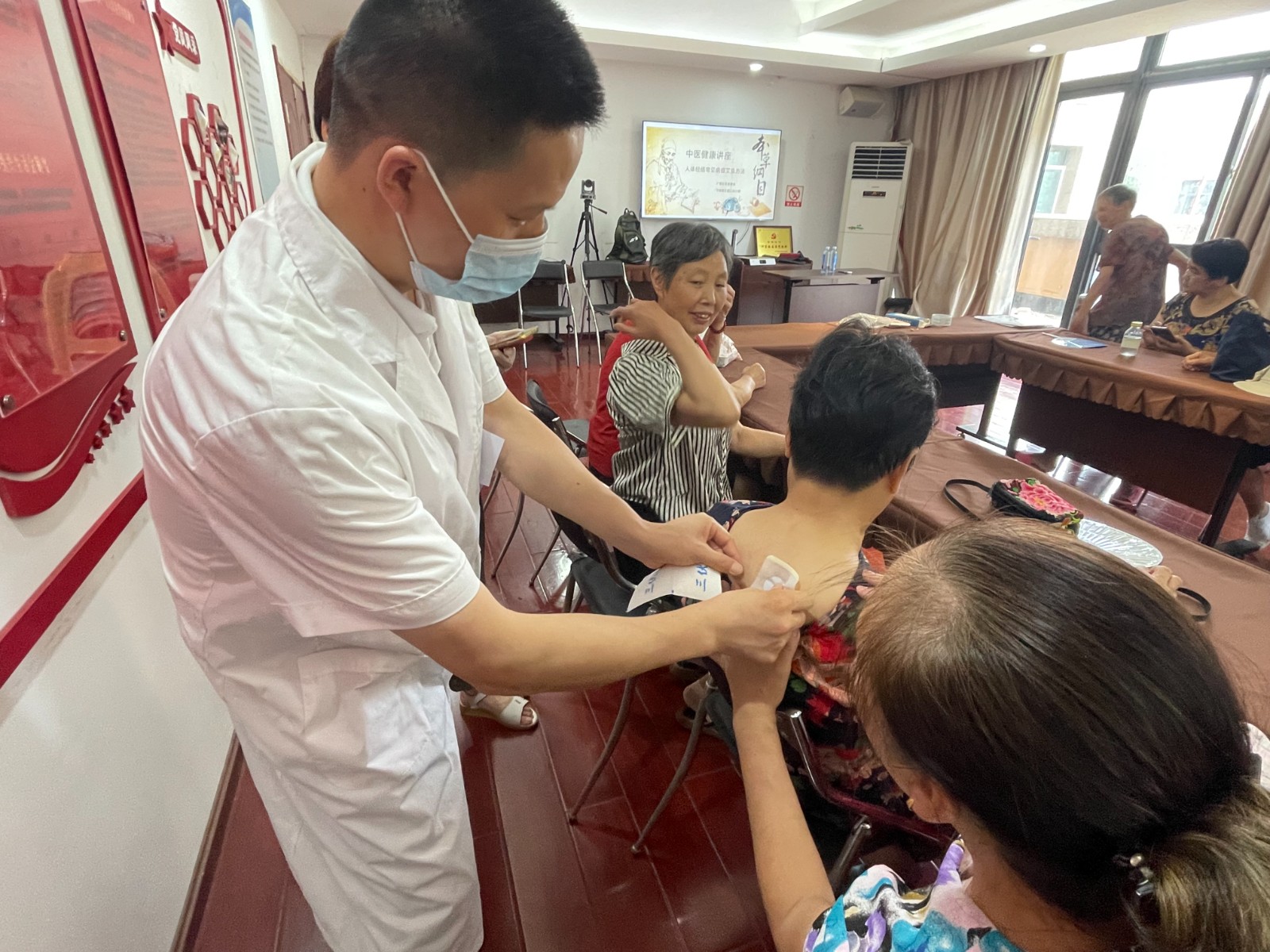 艾灸是用艾叶制成的艾炷、艾条为主,熏烤人体的穴位以达到保健治病的一种自然疗法。课程以PPT和现场演示相结合的形式展开,王大夫首先介绍了艾灸的原理、功效及基本操作流程,让社区居民充分了解了人体的穴位分布和艾灸治疗的正确方法。随后王大夫通过为学员亲自示范、现场教诊,让大家充分了解诊疗的功效和作用。