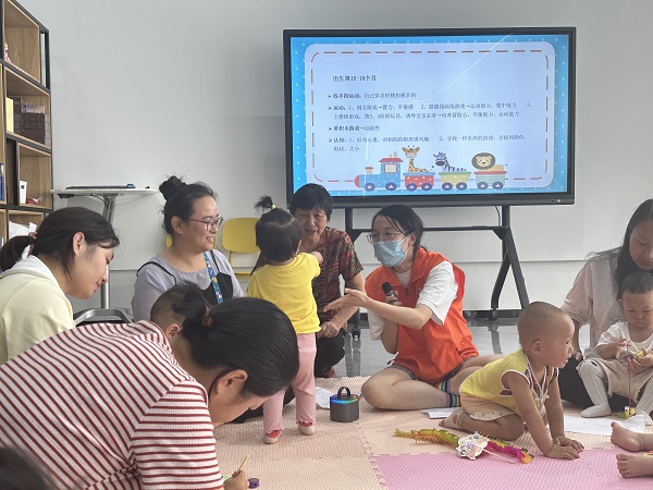 “婴幼儿的早期教育更多的是行为的养成,0-3岁是行为养成、激发潜能、促进智能发育的关键时期,家长一定要根据宝宝的发育规律,有目的,科学地进行早期教育。”活动中,医生先简单介绍了本次活动的主题,随后详细讲解了各个年龄段早期教育的知识以及注意事项,强调高质量的亲子陪伴与互动对婴幼儿早期智力开发的重要性。简单的授课后,医生便组织家长和孩子们进行游戏环节。社工根据本次参加活动的小朋友的年龄段拿出相对应的游戏器材,让孩子们与家长一起玩耍。“搭积木不仅可以锻炼孩子的手部精细动作,还能强化专注力,回家以后可以进行类似的训练,有助于孩子的智力开发!”亲子互动中,医生根据现场表现情况给与了专业的指导和建议。“我们都是第一次当妈妈,很多知识都不懂,社区组织了这样的活动,还邀请了专业的医生进行指导,让我们学会很多,下次活动,我还要参加!”活动的最后,家长们纷纷表示。
