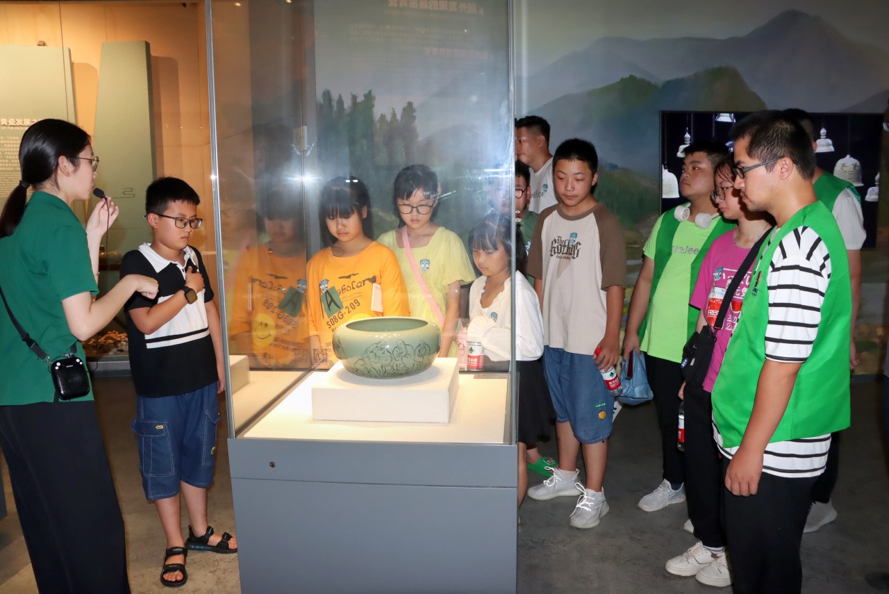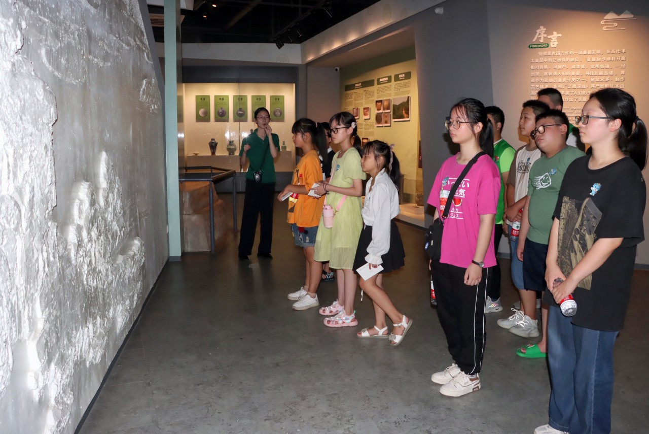 “我们生活中有什么是青瓷做的?”“为什么叫秘色瓷?”“陶器和瓷器都有哪些区别?”随着讲解员的提问,学员们纷纷被吸引了注意力,带着好奇开启了青瓷研学之路。