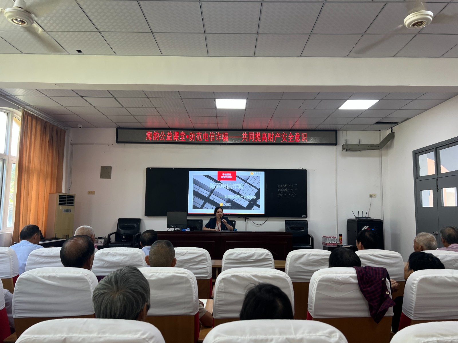 王维品行长通过近期发生的诈骗案件详尽介绍了冒充公检法、冒充熟人、贷款诈骗、冒充快递客服、投资诈骗(杀猪盘)等常见骗术,深入分析了上当受骗的主要原因,仔细讲解了如何防止电信网络诈骗应对措施,为退休老师们上了生动的一课。