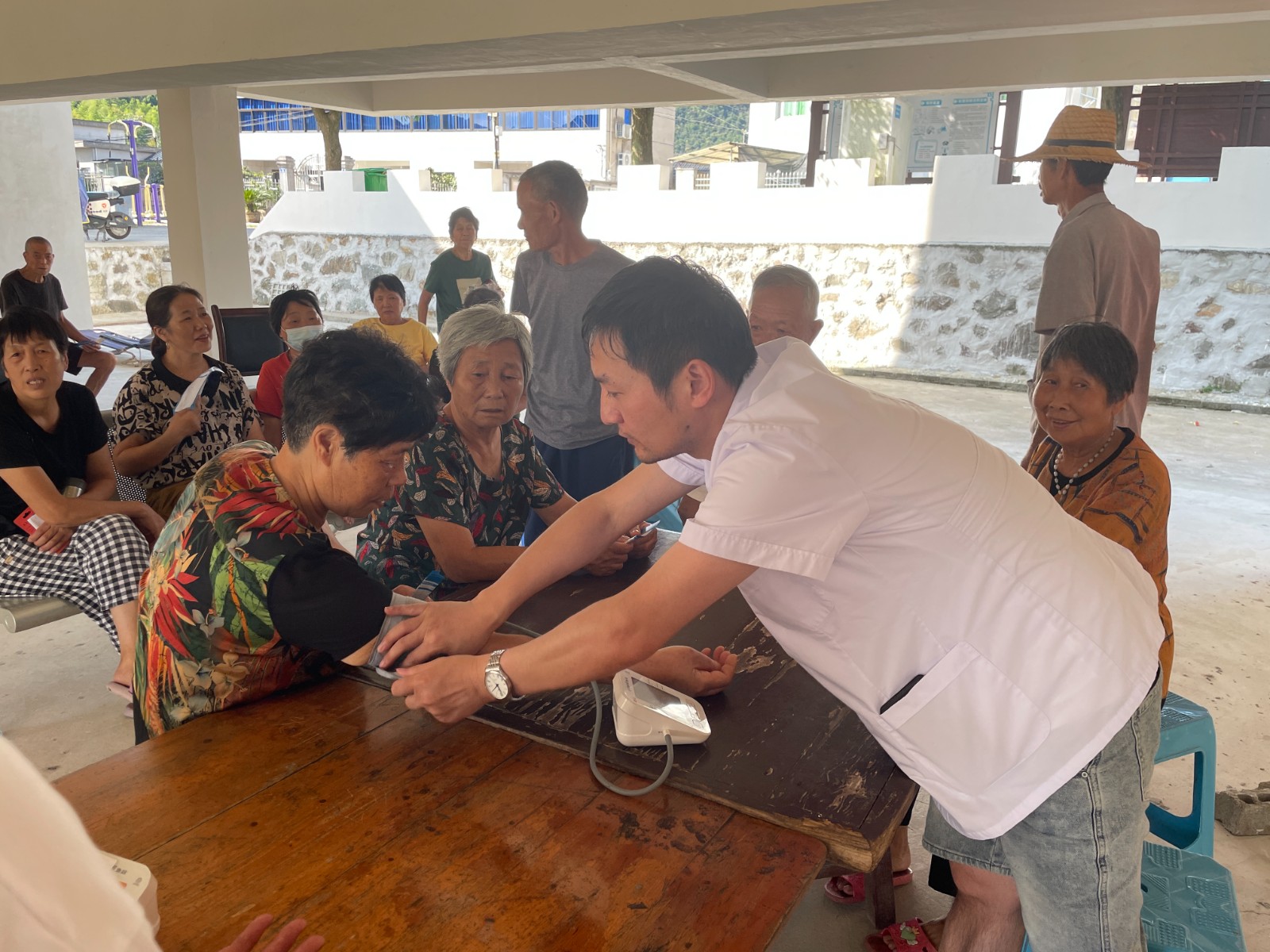 讲座结束,陈医生还为在场的村民现场测量血压,村民围在陈医生旁边,一边测量血压,一边咨询健康问题,陈医生耐心地给大家一一作了解答。本次活动获得了村民们的一致好评。