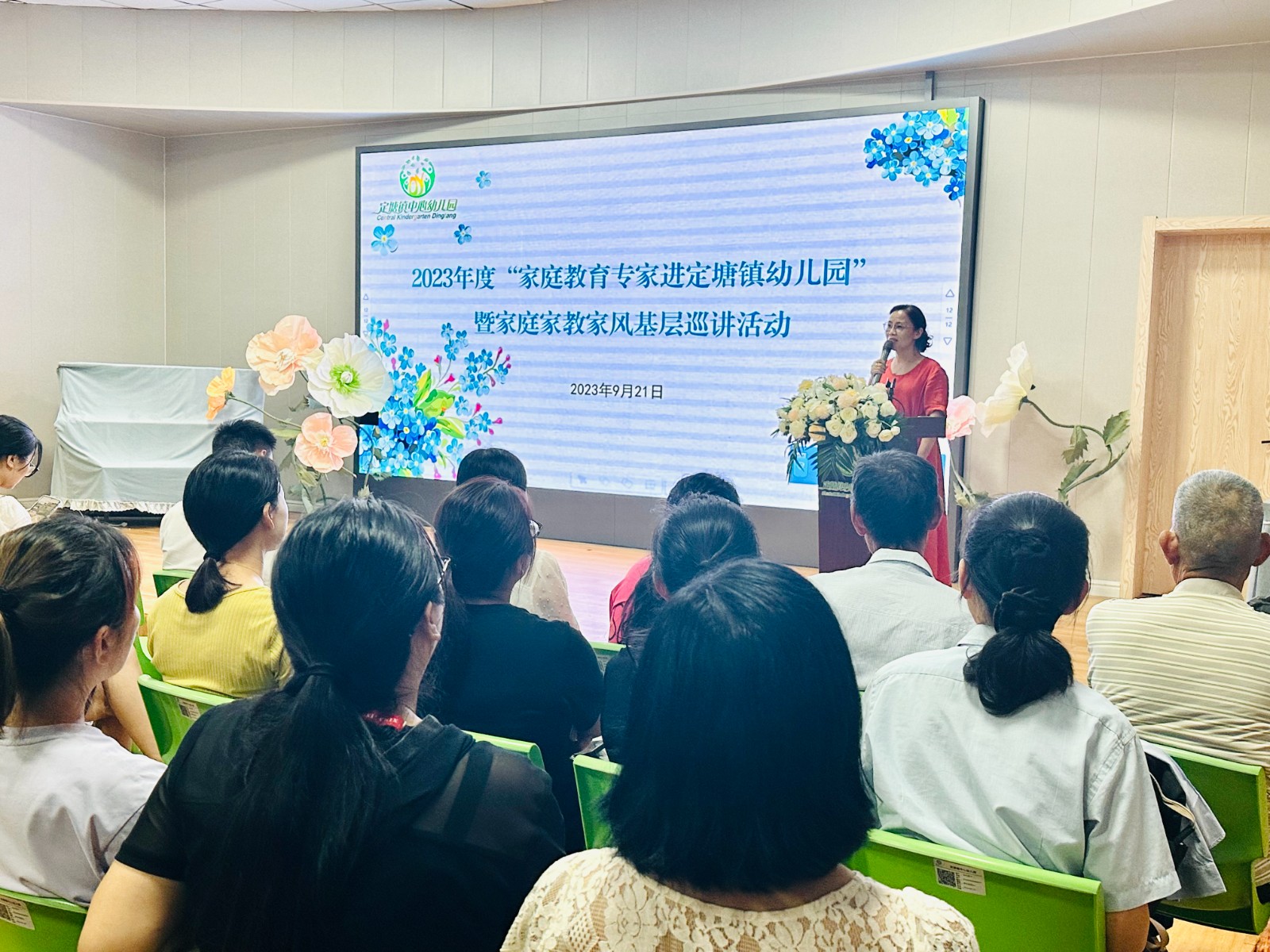 921日晚上,象山县丹西街道成人学校家庭教育送基层活动走进定塘镇幼儿园。晚上6时半,定塘镇幼儿园报告厅里座无虚席,该园小中大班的家长们聚集其中,正在认真聆听家庭教育老师的专题讲座。