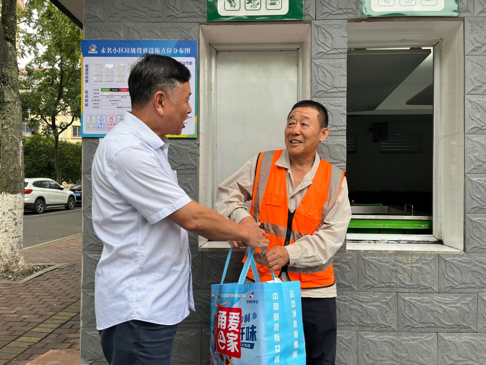 在我们的城市里,环卫工人早已经成了生活中不可或缺的一部分。清晨,当大家还在梦乡中沉睡,他们却已早早上岗;节假日,当大家尽情享受与家人欢聚一堂,他们仍然坚守岗位......就是这样默默地付出,才让我们的城市变得更加美好。“辛苦了!”炼化社区党委书记朱明章一边递过慰问品,一边关切地与环卫工人交谈,进一步了解环卫工人的需求,用实际行动提升他们的归属感、融入感和幸福感。