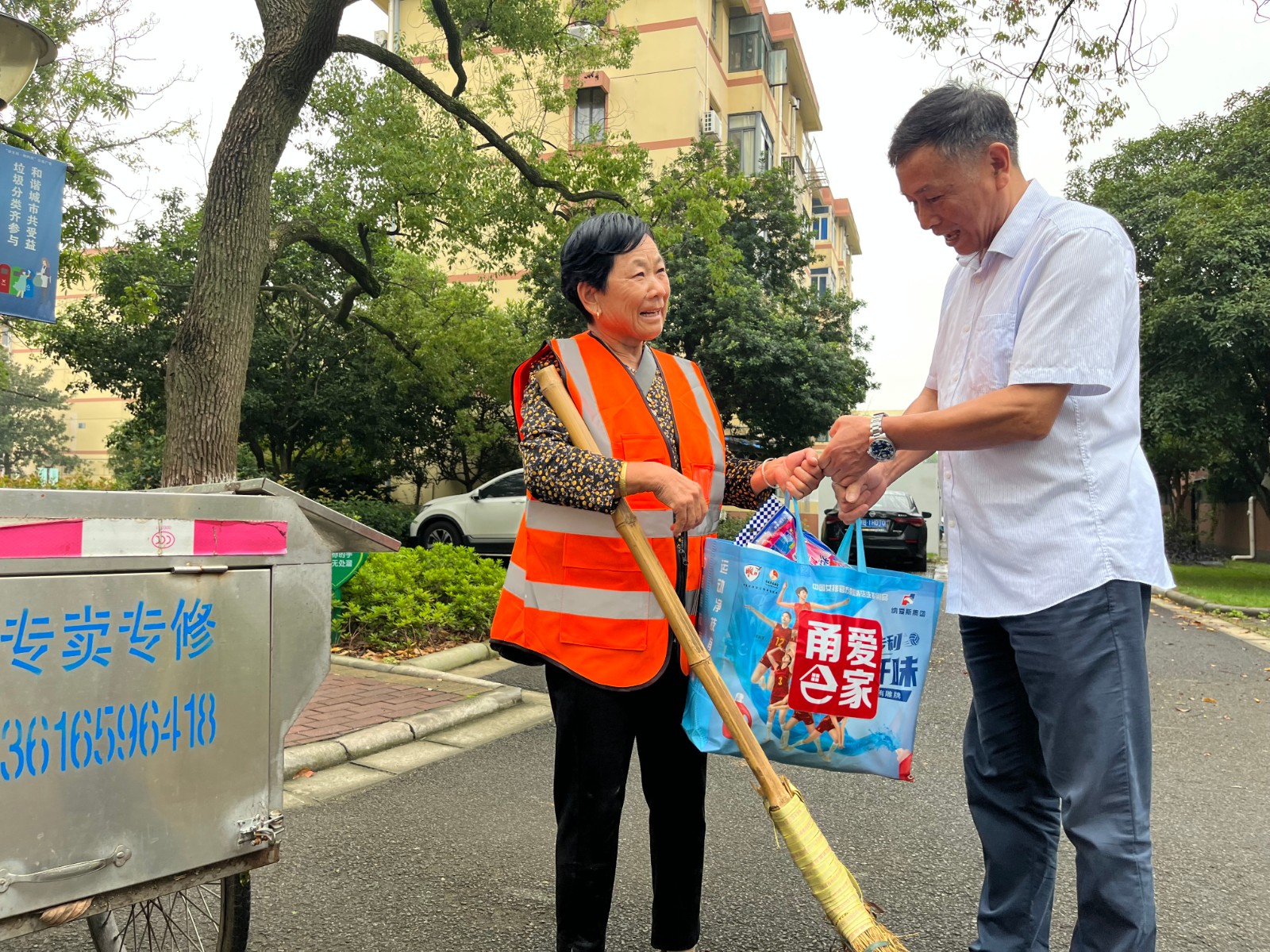 入暑以来,持续的高温天气给辛勤劳动的城市一线工作人员带来了严峻的“烤”验。为感谢辖区环卫工人的辛勤付出,9月22日上午,炼化社区“甬爱E家”户外劳动者服务驿站开展“爱E家,递温暖”慰问活动,为他们送去阵阵“清凉”。
