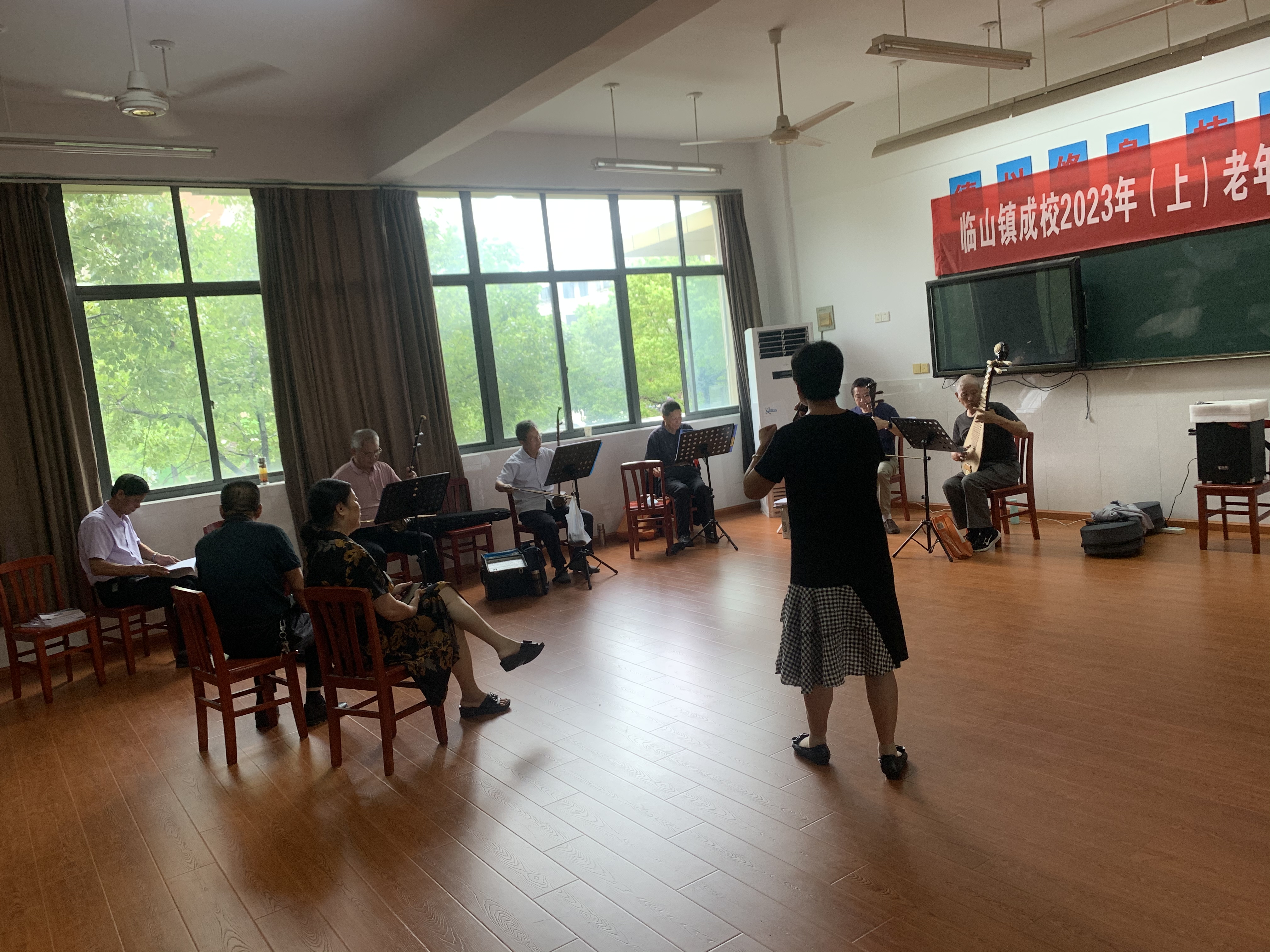 老年大学是满足老年人精神文化生活需求的重要舞台,临山成校老年大学结合社区实际和老年大学的特点,适其所需,开设西区弹唱班,进一步增加本社区老年人的幸福感、参与感,帮助老年人构建丰富多彩的晚年生活。