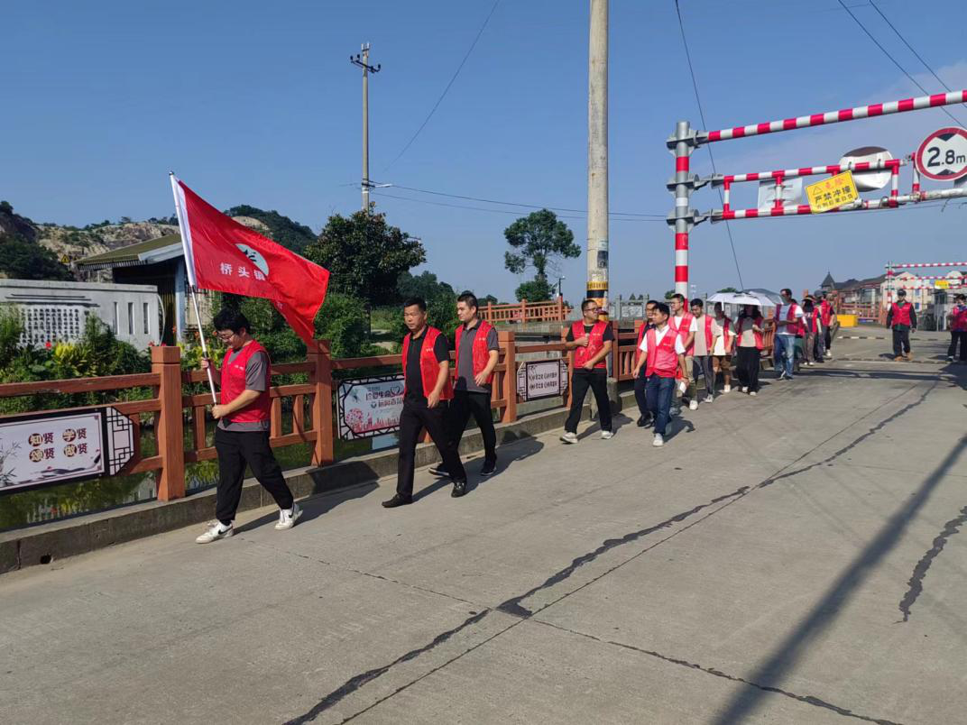 为保障水域安全整洁,在中秋、国庆佳节来临之际,桥头镇水治办联合桥头镇成校及护水志愿者一道开展了“护航亚运•喜迎双节”全民护水活动,巡护河道、宣传水治,让更多群众感受治水氛围、了解治水历程、参与全民护水、共享“五水共治”成果。