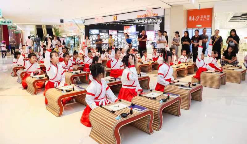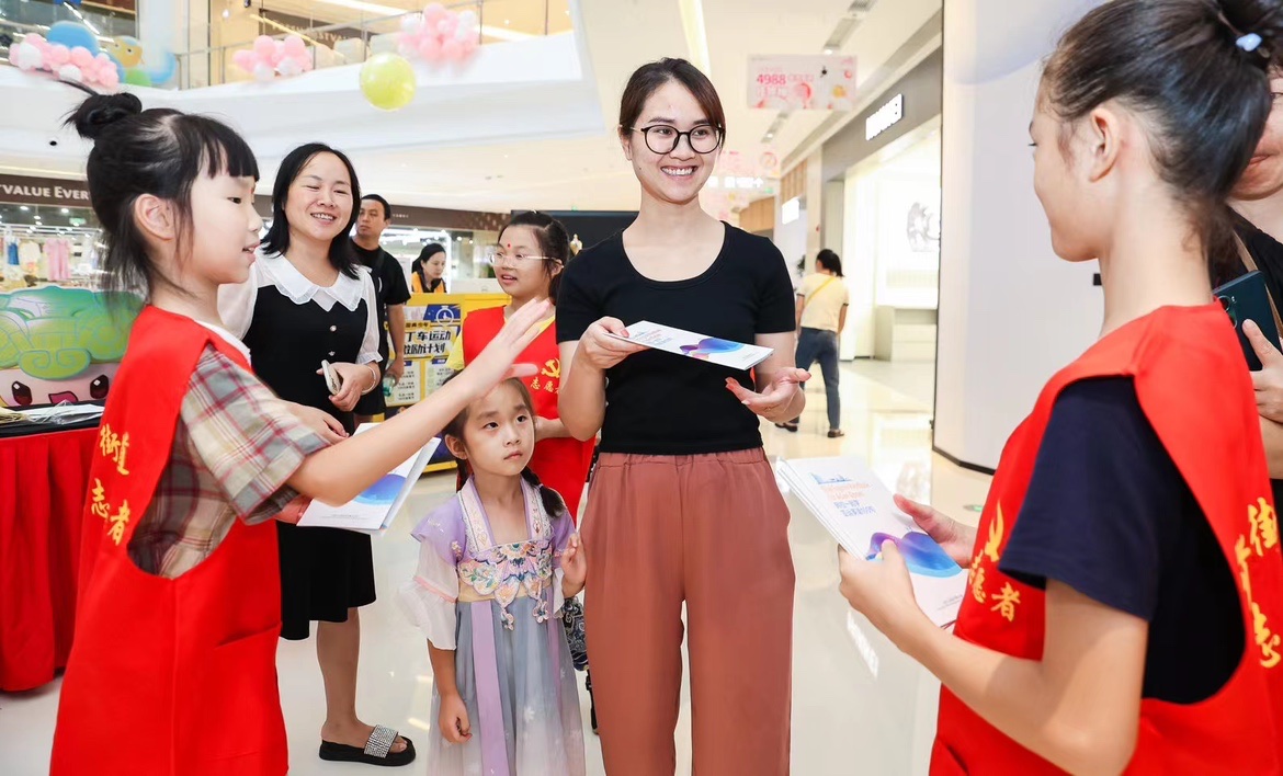 近日前江街道新时代文明实践所联合中旅城ifmall商场举办开蒙礼暨志愿服务前江yo+易站落成仪式,活动中还进行了亚运知识答题和小小义工分发学亚运英语手册志愿活动