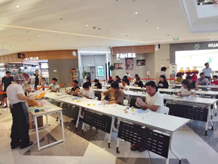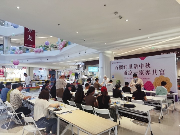 929日,为促进各民族群众交往融洽,宁波市江北区前江街道联合辖区恒帅石榴红共富工坊、宁波中旅城If mall易生活购物公园共同举办了石榴红里话中秋,甬凉一家奔共富庆中秋活动。活动邀请了共富工坊内十余名大凉山彝族员工和社区居民共同制作手工月饼,以制作传统佳节美食为寄托,营造团团圆圆过中秋的祥和氛围。