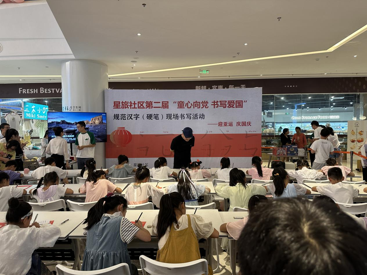 近期,为了向伟大的祖国母亲表达深深的敬意和祝福,星旅社区联合中旅城if mall开展了一场别开生面的“童心向党、书写爱国”规范汉字书写活动。我们荣幸的邀请到了青年书法家马见存老师做评委,共吸引了120位小选手参与。