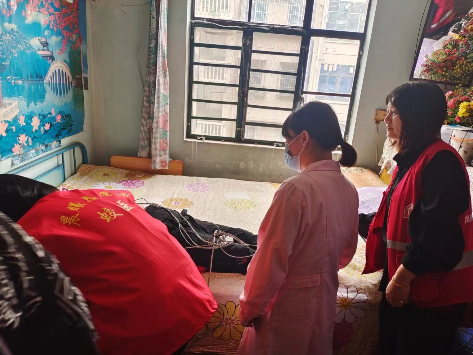 活动中,网格员赵微陪同医生一起走访了辖区内的残疾人家庭,社区卫生服务站的医务人员仔细为残疾人依次进行了测量血压、血糖、采血、做心电图等健康检查项目。在体检过程中,医生耐心询问了他们近期身体健康状况,了解其用药情况,对他们的体检结果作耐心解释并讲解注意事项,最后送上装有米和油的慰问品,让残疾人们感受到无微不至的关怀。一直在服用精神类药物的吴阿姨说:“我年纪大了,出行也不方便,真是感谢你们来上门给我体检” 。对外界陌生环境感到害怕和恐惧的小迟患有唐氏综合症,这次网格员联系医生到他熟悉的环境中进行简单体检,他由原来的紧张抗拒到渐渐的愿意伸出自己的双手,有了很大的进步。 “你们为我们做的真的太多了,小迟从来没去过医院,在家给他体检,我也很放心。” 迟妈妈握着赵微的手说道,感激之情溢于言表。