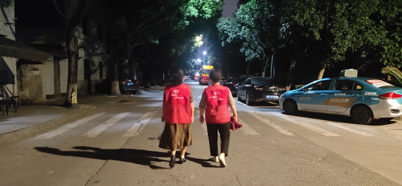 该巡逻队主要成员由江北区河东社区红格子社会组织服务中心的志愿者们组成,在网格员柯琴及志愿团队队长俞春花的工作安排下,每晚7点平安夜巡对在河东社区辖区有序进行平安巡逻工作。