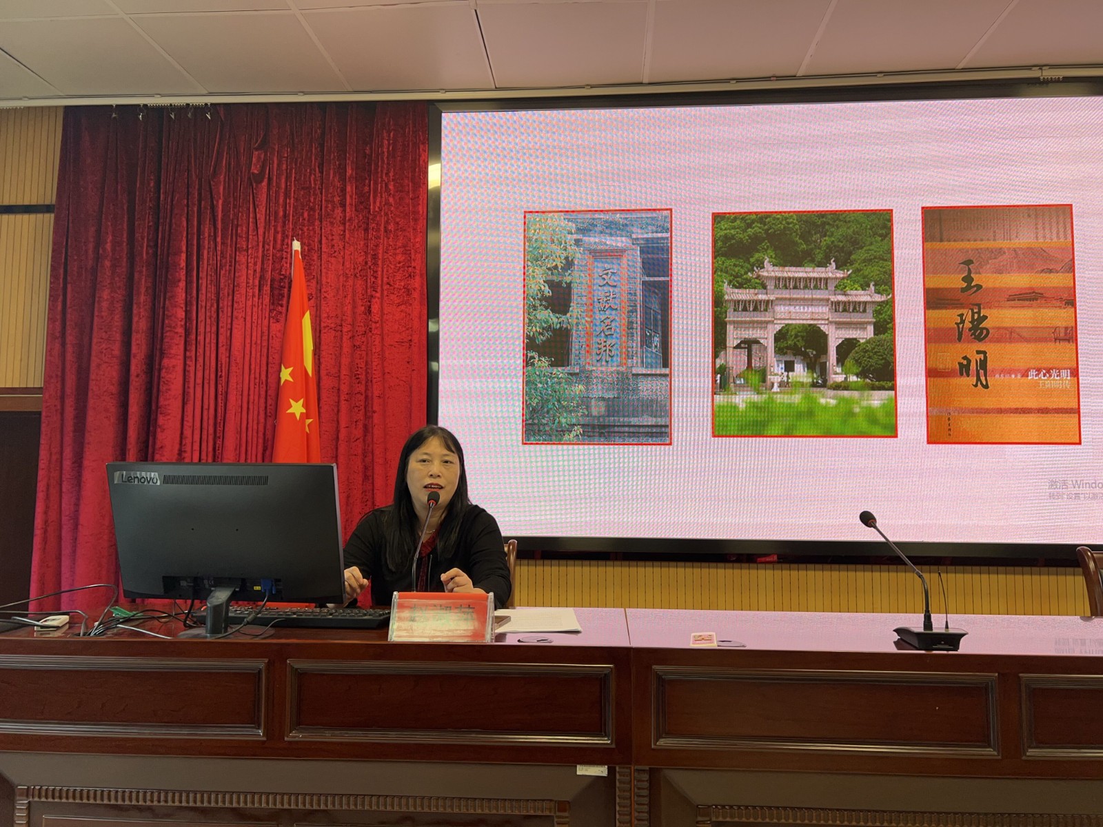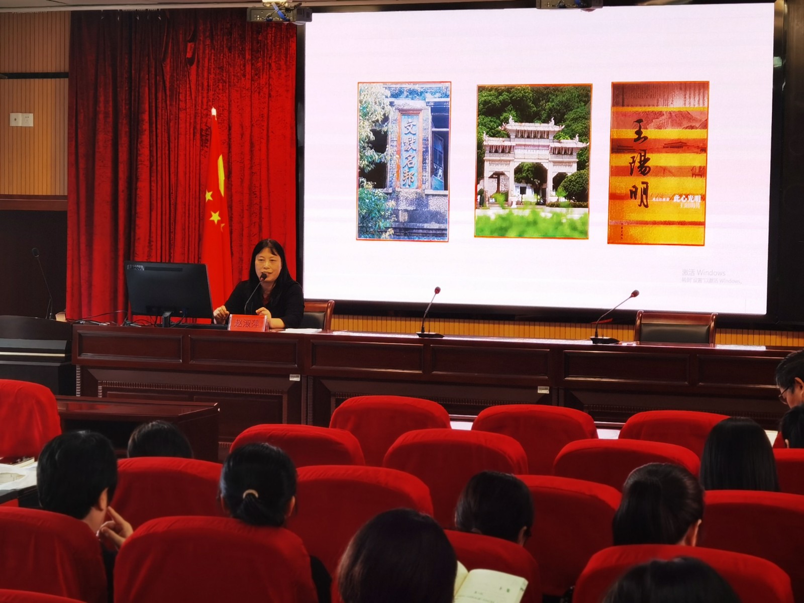 本次活动有幸邀请到宁波开放大学名师、海曙区作家协会主席赵淑萍老师为全校教师做讲座,她带来非常接地气的内容——“姚江四贤”。她从“东南最名邑”引出“姚江四贤”,重点讲述了一代大儒王阳明。她的讲课结合了余姚四先贤的生平经历,穿插了圣人先贤的古诗名句,甚至还讲到一些奇闻逸事。她博学多识,谈古论今,娓娓道来,在座的教师听得津津有味。致敬先贤、学习先贤,可以促使我们见贤思齐、自我内省,不断提高自己,从而凝聚干事创业的奋进力量。