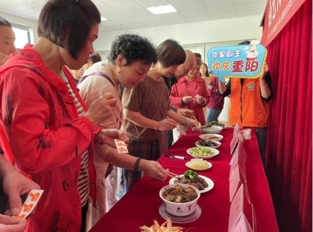 以厨会友,以食为乐。重阳来临之际开展厨艺比拼,不仅让居民们感受到了浓厚的节日氛围,也通过活动增进了邻里情,营造了重阳节欢乐和谐氛围。