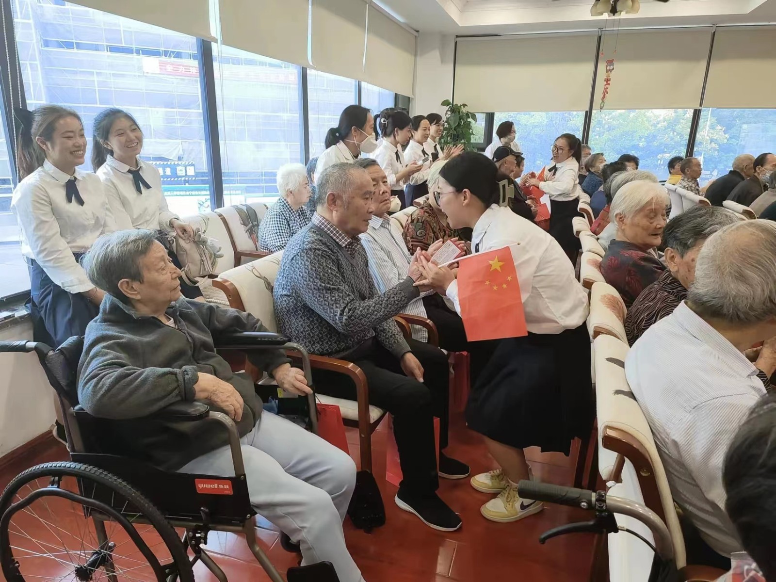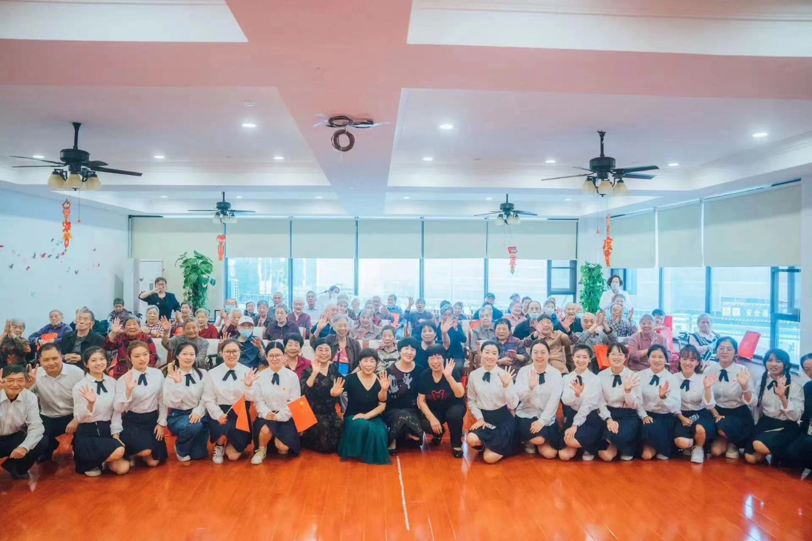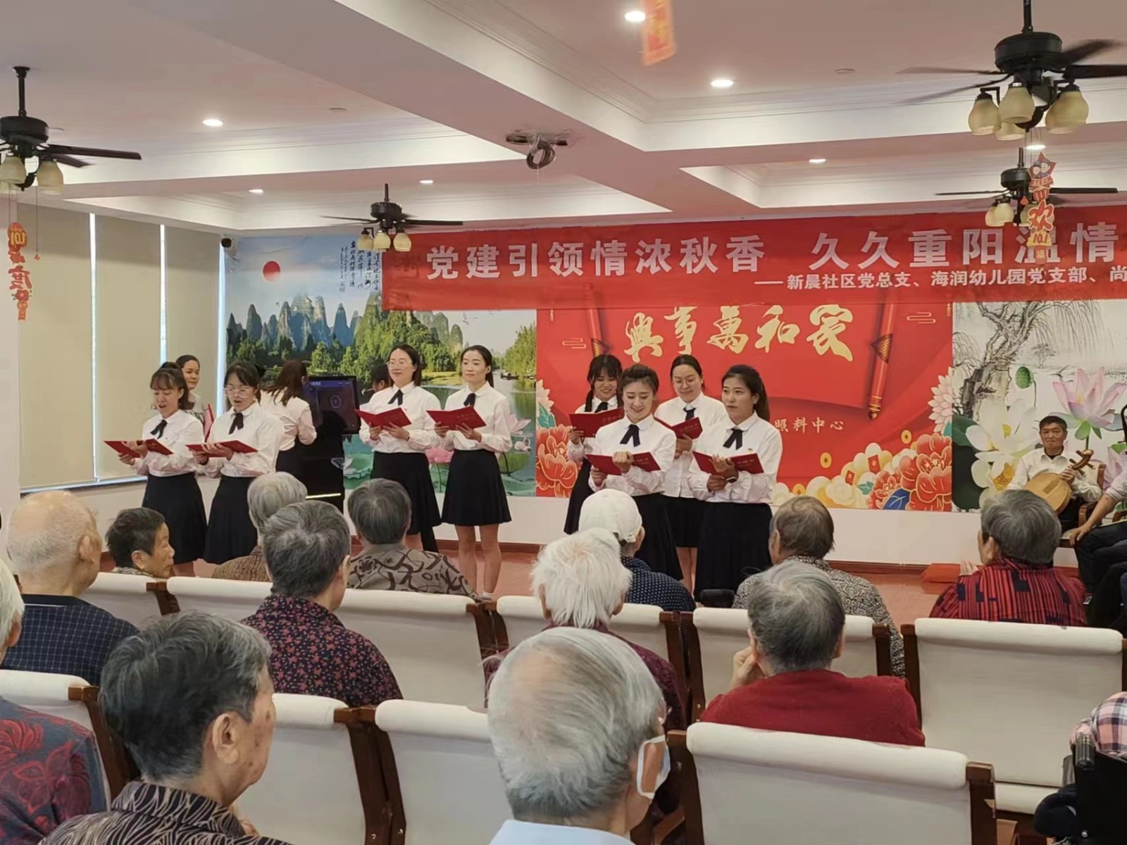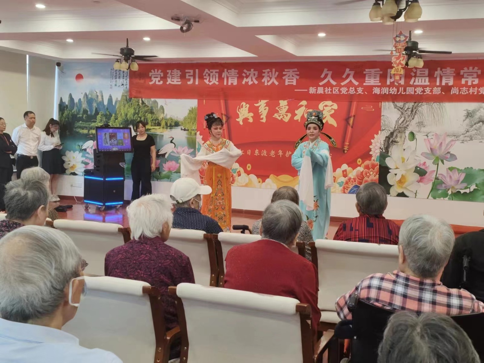 1019日下午,新晨社区党总支联合海润幼儿园、尚志村党总支在红日东渡老年护理照料中心开展党建引领情浓秋香,久久重阳温情常在暨庆祝重阳节主题活动,通过歌舞、越剧、朗诵等表演节目给院里的老人们带去节日的祝福!在弘扬中华民族传统美德的同时,营造孝老爱亲的文明社区氛围。