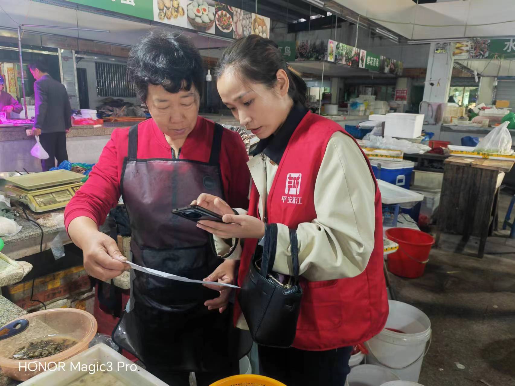 线上线下通知到位。白峰街道组织12个村和3个社区利用其建立的网格微信群上传二维码,发动有智能手机的居民进行扫码参加平安三率问卷调查,并通过线上渠道耐心解答群众咨询的问题。同时在小区宣传栏、LED显示屏等显著位置张贴宣传海报,安排时间,合理分组,在白峰菜场、下阳菜场、文化活动中心广场、神马岛、小门工业区等人流量较为集中的位置设置点位,向往来的居民群众、企业职工发放平安建设手册、“致全市新老宁波人的一份信”等宣传资料。