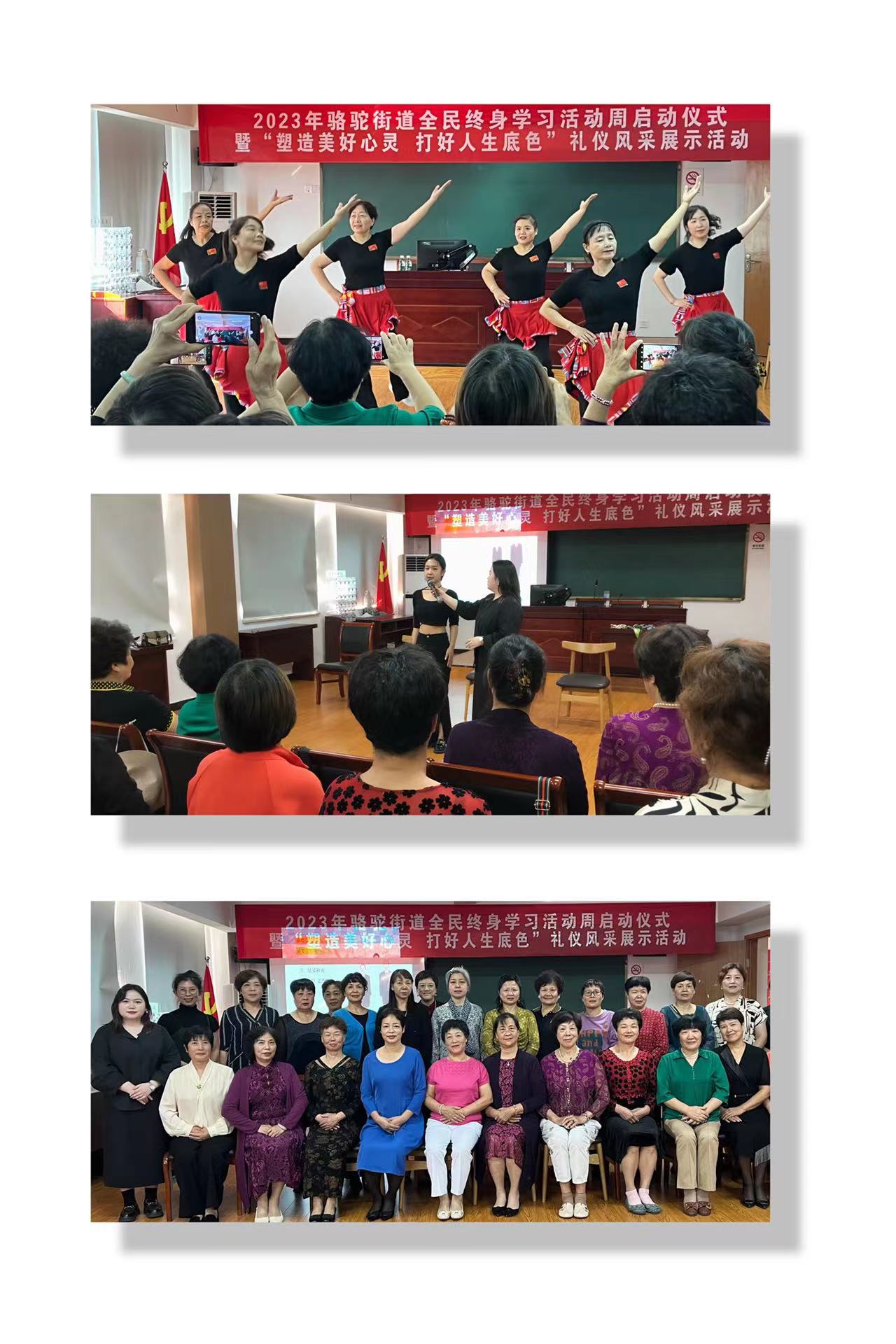 金秋时节,桂花飘香,为展现骆驼街道全民终身教育新成果,营造全民终身学习的浓郁氛围,11月2日下午,镇海区骆驼成校2023 年骆驼街道全民终身学习活动周启动仪式暨“塑造美好心灵,打好人生底色”礼仪风采展示活动参加活动的是骆驼街道老年大学学校本部9个班级的50名代表学员和部分教师。