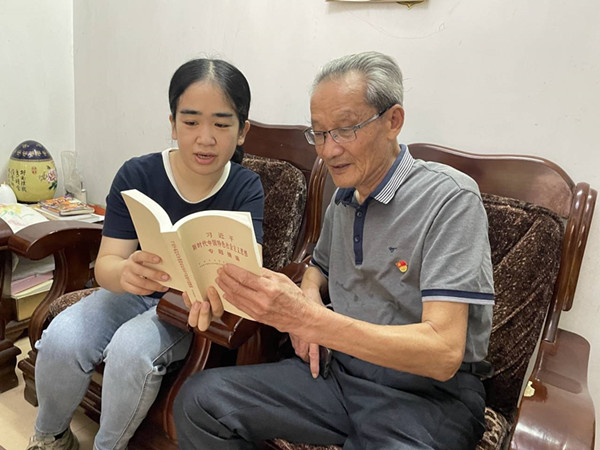 “胡阿伯,我给您送书来了,都是咱们主题教育必学书目。”近日,陈华浦社区青年党员陈芬来到了结对帮学的老党员胡信康家中,现场为其解读主题教育学习材料内容。
