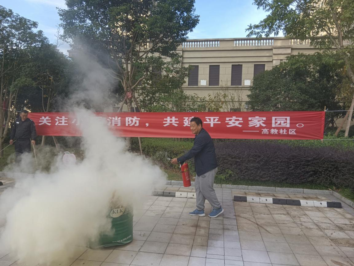 为进一步提高物业和群众的安全消防意识,引导居民掌握消防逃生知识、熟悉消防灭火技能,11月9日,高教社区开展“关注小区消防,共建平安家园”消防演练活动。有社区工作人员、物业、党员志愿者等50余人共同参与此次演练活动。