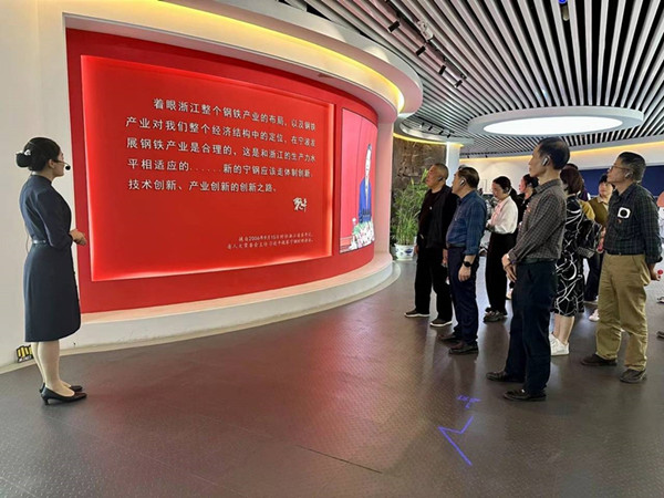 活动中,在讲解员的带领下,党员们先后参观宁钢展览馆、创新展示厅、智慧管控中心等场所,了解了宁钢废水处理循环系统、热轧宽带钢生产线、高炉炼铁等方面取得的成果,看到钢厂近年来的变化发展,感受国有企业的飞速发展,学习了坚韧不拔的钢铁精神,汲取前进奋斗的力量。