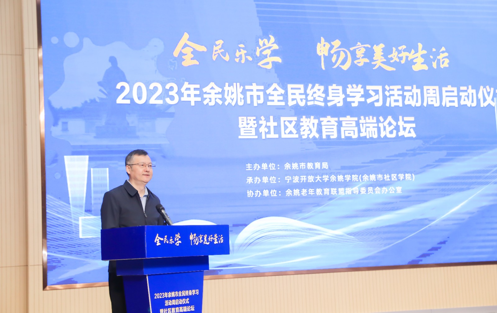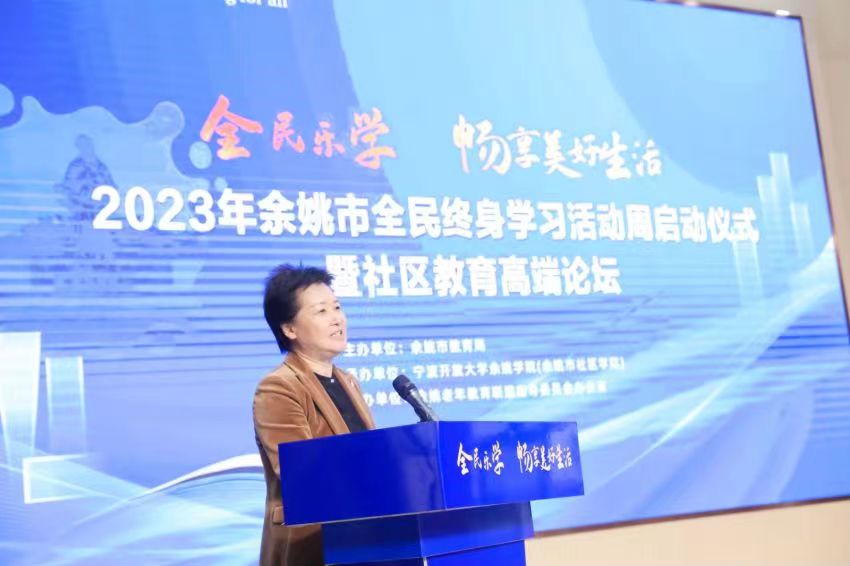 11月11日上午,2023年余姚市全民终身学习活动周启动仪式暨社区教育高端论坛在市老年大学举行。本次活动由市教育局主办,宁波开放大学余姚学院(余姚市社区学院)承办、余姚老年教育联盟指导委员会办公室协办。宁波开放大学校长翁雪莲、副校长郭玮,余姚市委组织部副部长、老干部局局长唐飞琴,市教育局局长熊剑锋出席了本次活动。市职成教教研室领导、老年大学校长、部分老年教育机构负责人、全市成教工作者、各类获奖代表等170余人参加了活动。