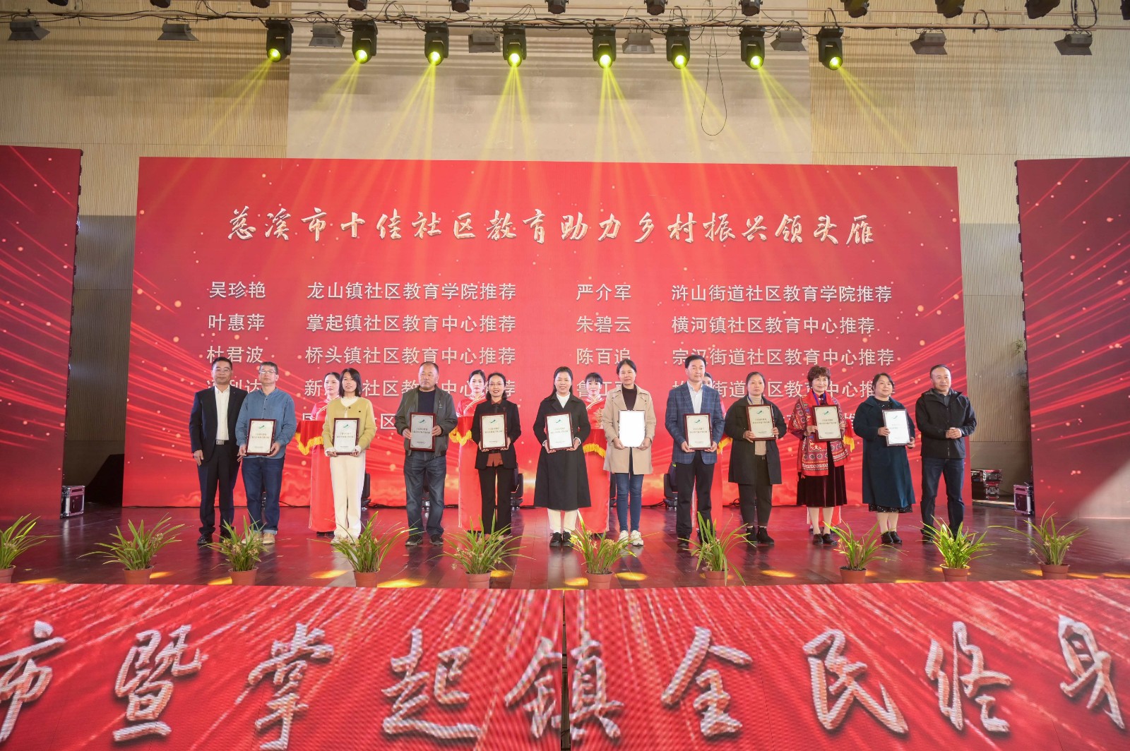 在刚刚结束的2023年慈溪市全民终身学习活动周启动仪上,隆重表彰了获“宁波市高水平成人学校”、“慈溪市十佳社区教育助力乡村振兴领头雁”等浙江省、宁波市、慈溪市级荣誉的44个单位和个人。在五个批次的表彰中,龙山成校四次榜上有名:学校被评为“宁波市高水平成人学校”和“慈溪市十佳学历提升优秀学校”;推荐的民宿经营者吴珍艳获“慈溪市十佳社区教育助力乡村振兴领头雁”,东门外村党委副书记吴灵获“宁波市百姓学习之星”、非遗项目“水火流星的传承与推广”获“宁波市终身学习品牌项目”,真可谓是硕果累累。