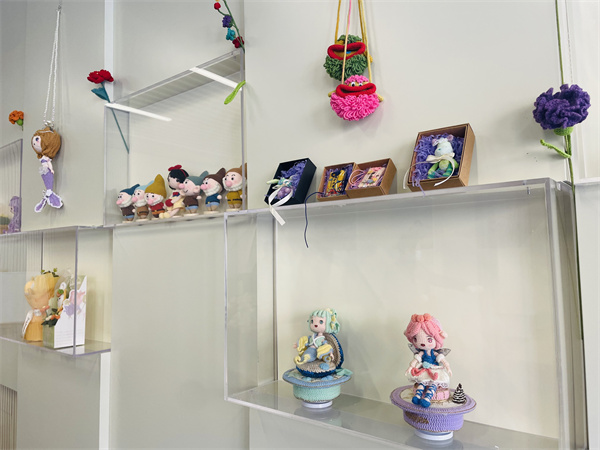 如今,通过“针功夫”共富工坊学习,“小白”手工艺学员渐渐成为“行家里手”,她们用巧手与丰富的创意制作出一件件精美的工艺品。“之前在家没事干觉得挺无聊的,现在我爱上了钩花,家里摆满了我做的花束,我还给孙女做了钩花的发夹,她超喜欢。”学员吴阿姨一边学习,一边展示自己的作品。