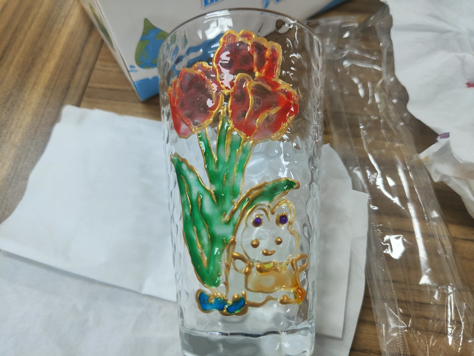 看似简单的手绘,操作起来却并不容易,用金线笔描摹勾边、用玻璃颜料调色勾画。力度掌握的不好金线就会变得粗细不一,玻璃颜料流动性强需要大家细致得慢慢上色。虽然过程不易,但居民表示自己在动手实践中锻炼了耐性,也感受到了玻璃彩绘的独有魅力。经过一番努力,一个个独一无二的限量款玻璃杯跃然呈现,居民用自己灵巧的双手让杯子拥有艺术的美感,将此永远握在手中。