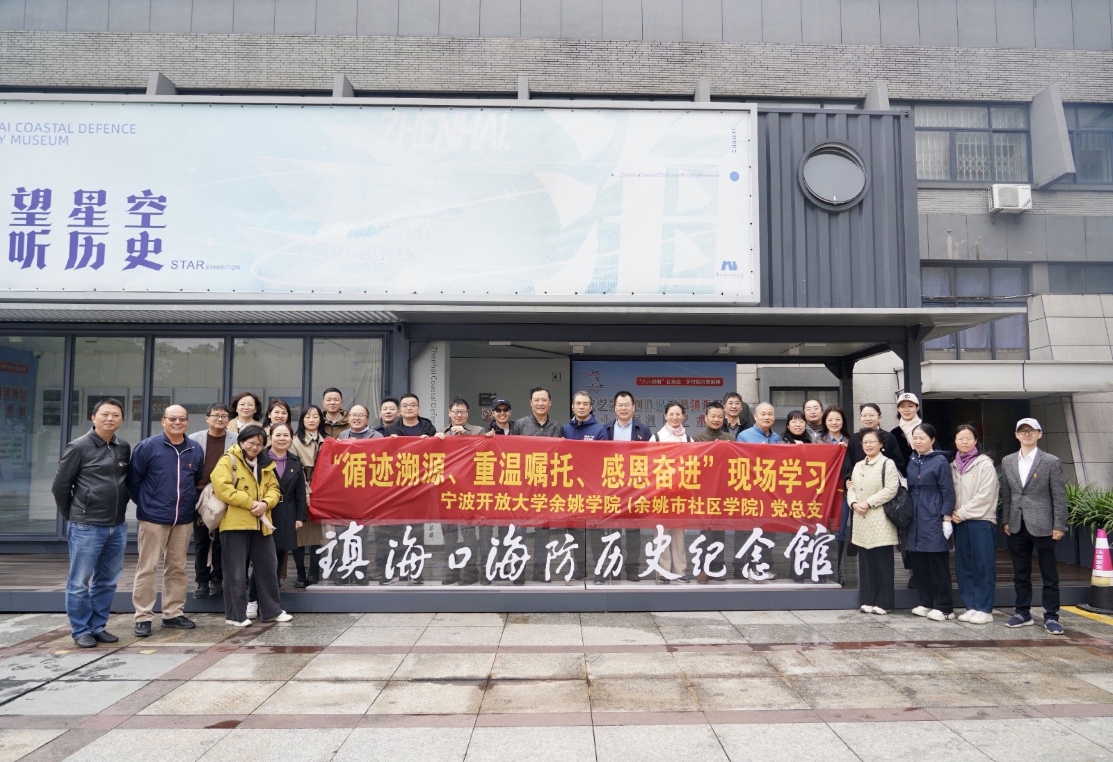 推动学习贯彻习近平新时代中国特色社会主义思想主题教育走深走实,持续深化“循迹溯源学思想促践行”,11月16日,宁波开大余姚学院(市社区学院)党总支组织全体在职党员赴镇海开展“循迹溯源、重温嘱托、感恩奋进”现场学习。
