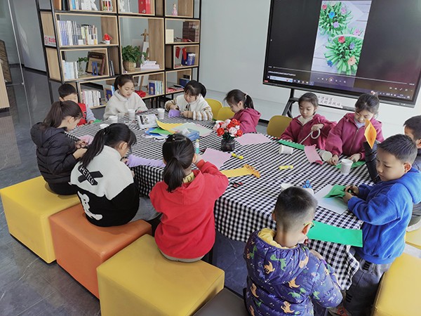 活动中,社区工作人员耐心地为青少年讲解制作花束的流程注意事项,随后在社工的指导和示范下,小朋友们发挥创造力,施展剪纸技能,将原本普普通通的彩纸进行裁剪,再根据色彩组合、搭配,制作出漂亮美丽的花束。在制作过程中小朋友们相互帮助、相互提出建议,脸上洋溢着笑容,大家都乐在其中,享受制作过程。
