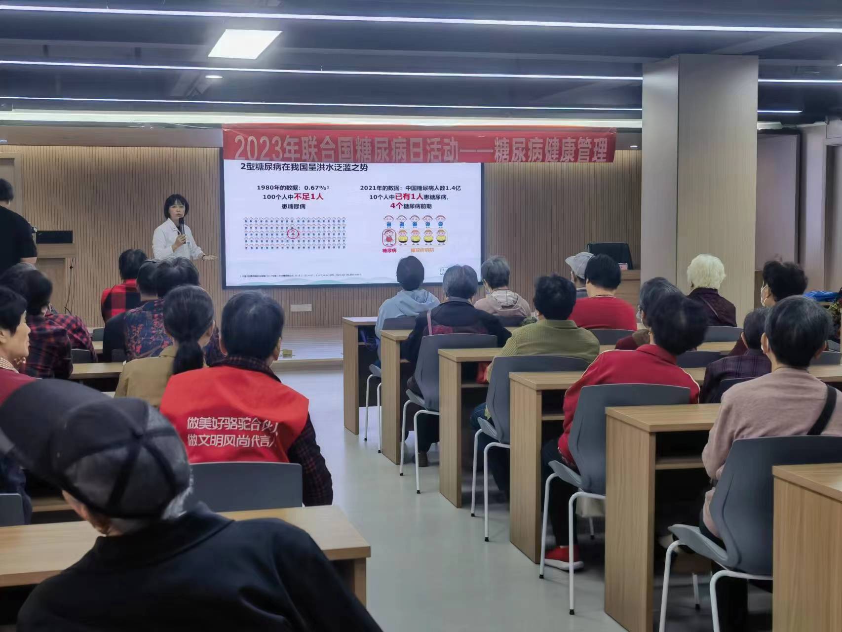 进一步普及科学的糖尿病防治知识,118日,盛家社区联合镇海区糖尿病临床防治指导中心,开展了“糖尿病健康管理”讲座,这场讲座对于进一步养成健康生活方式、有效防治糖尿病具有积极的意义。医生为社区居民科普了糖尿病的危害及危害人群的筛查,让大家了解了长期的高血糖状态对我们的的心、脑、肾等器官和组织的危害,知道了糖尿病的三级预防及目标,学会了怎么识别糖尿病的高危人群。另外还有现场测血糖和血压,帮助居民了解自己的身体状态。通过糖尿病的科普活动,居民对糖尿病的认识都有了不同程度的提高,明白了控制血糖的重要性。