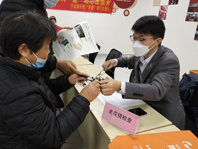 活动现场十分热闹,中医推拿、免费理发、磨刀、地铁咨询等便民服务摊位都排起了长队。“前几天在网格微信群里收到咱们网格员推送的活动通知,听说这次有老花镜的试戴项目,我们俩今天就第一时间赶过来了。”陈师傅和徐阿姨老两口在志愿者的帮助下开始试戴老花镜。不仅如此,在另一个地铁咨询摊位上的丁师傅认真听着志愿者讲解的地铁换乘的内容,“现在宁波的交通四通八达,到哪里都能坐地铁前往,听了网格志愿者的介绍,这下坐地铁更加容易了。”为了维持活动现场的秩序,网格志愿者根据服务内容的不同,为居民准备了不同颜色的号码牌,把提前准备好的号码一一分发给需要对应服务内容的居民。在反诈宣传点位上,银行工作人员向社区居民普及防骗小贴士。