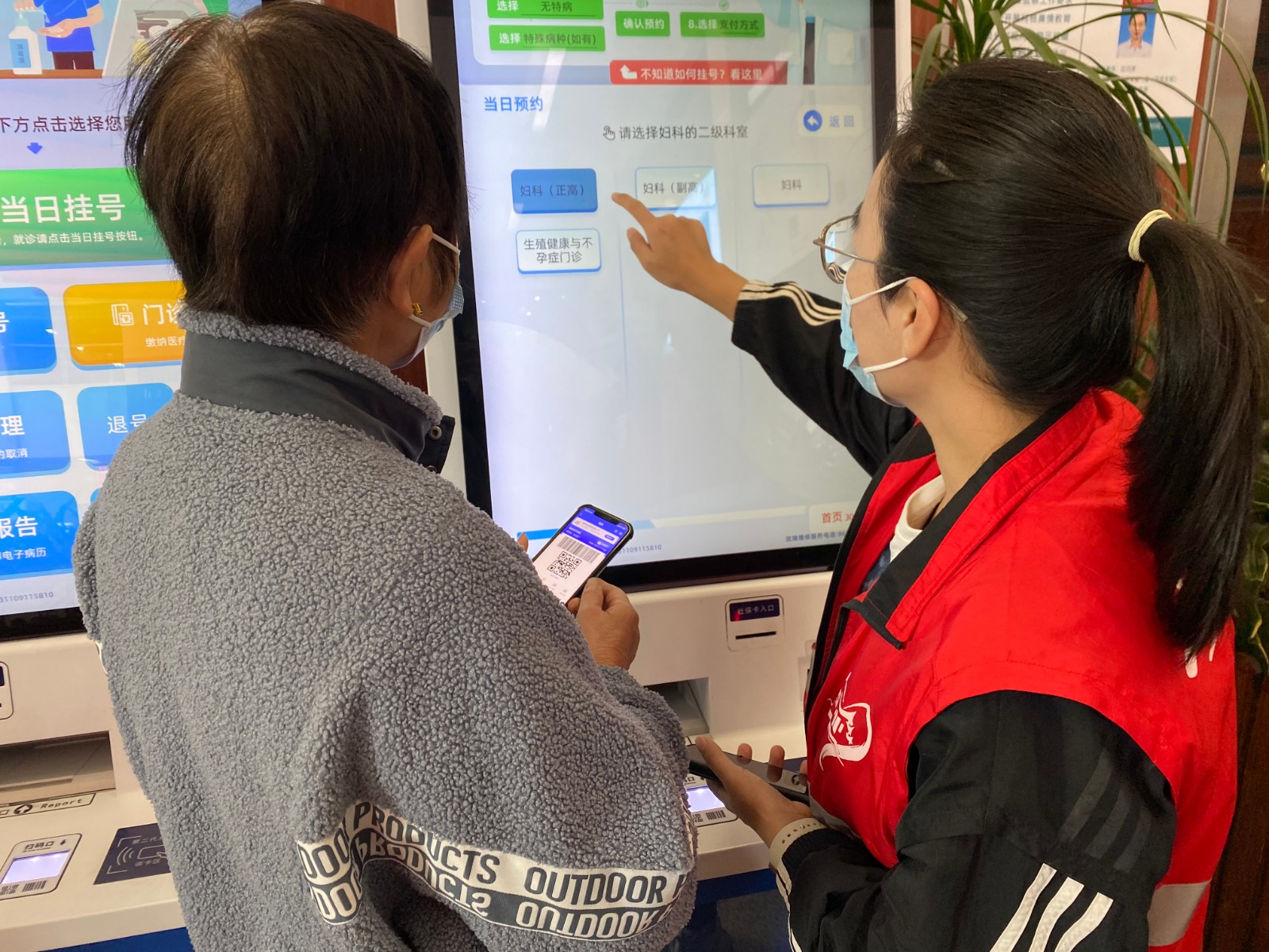 培训现场,志愿者用生动的话语,再现生活情景,让老年人演示如“身体不舒服,如何线上预约挂号?”、如何使用手机微信支付......通过情景演绎方式开展趣味教学。同时针对他们提出的问题,采取“一对一”、“一对几”和“多对一”的服务措施,指导老年人使用智能手机。在此基础上,带领老年人进医院、进超市等,通过现场真实教学方式,进一步教导老人就医自助挂号、取号等方式和自助结算机支付,把所学融入生活,让他们真正感受数字化生活带来的便利。