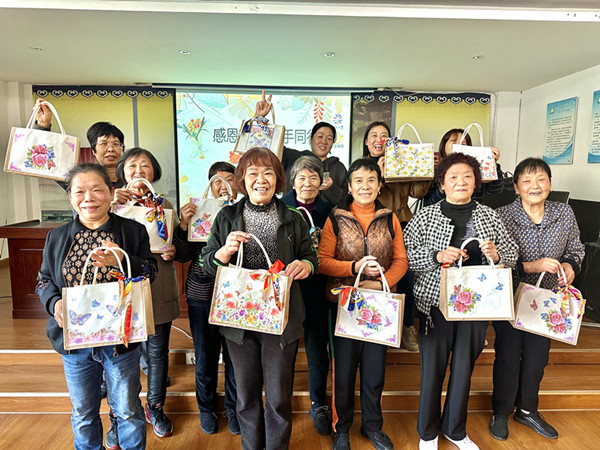 现场“学员们”结合工作人员的方法,巧学活用,将原本零散的材料华丽“变身”,“‘收包包’是最让人心花怒放的礼物了,这下可以在朋友们面前‘炫’一波了!”“这么好看的包包,明天买菜就可以用上了,里面装手机和小钱包。”看着从自己手中“诞生”的漂亮包包,大家爱不释手,成就感和自豪感油然而生。