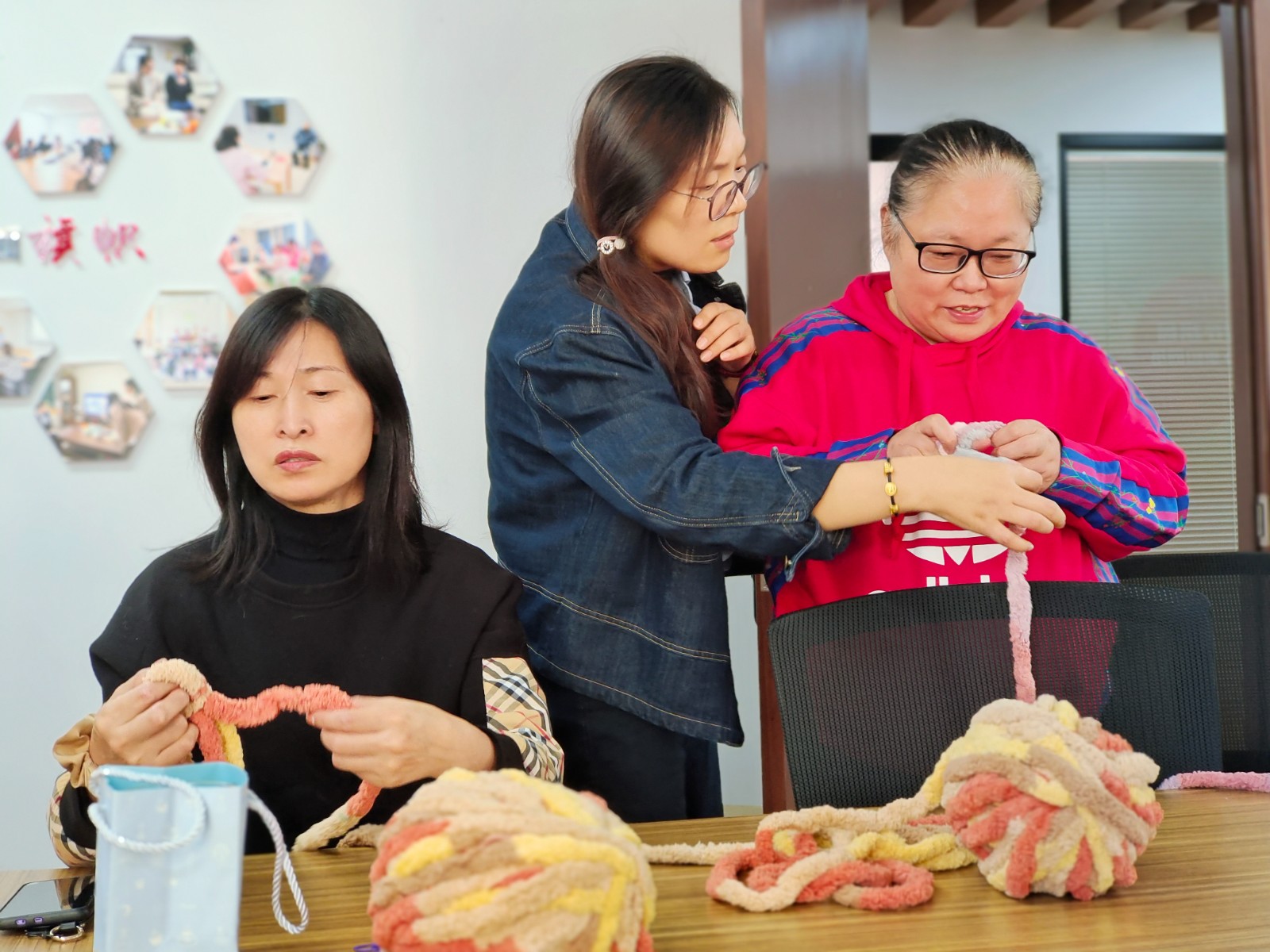 前江街道未来盛园“小雪已至,温暖同行”坐垫编织活动