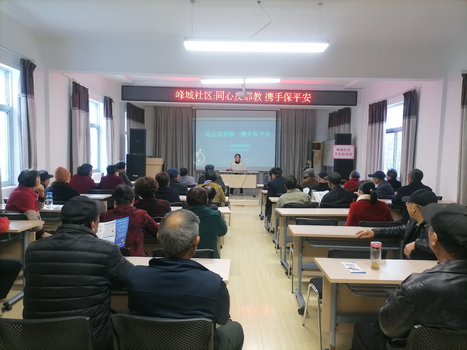 为增强居民群众的法制观念和安全意识,进一步加强反邪教宣传教育的深度和力度,营造积极向上、健康和谐的社区环境,12月6日下午,峰城社区党群服务中心开展以“同心反邪教·携手保平安”为主题的反邪教宣传教育活动。