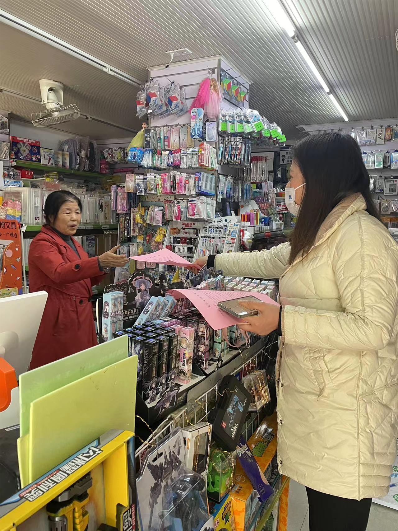 将近年底,为进一步做好火灾预防工作,有效防范化解各类安全风险隐患,确保辖区居民群众的生活安全,近期,庄桥街道天沁社区网格员和志愿者在辖区内开展沿街店铺和企业的“三合一”场所专项排查工作,并发放《消防安全告知书》,进行消防安全知识宣传。