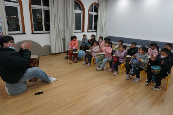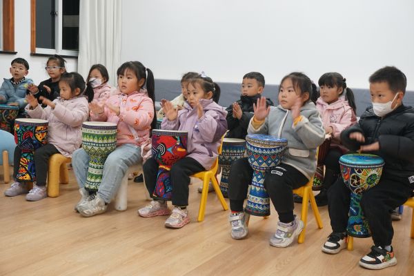 据了解,非洲鼓是一种打击乐器,可以极大满足孩子喜欢制造声响的天性,而且体验敲打乐器可以帮助孩子们感知节奏。活动中,老师边讲解手法边示范,孩子们跟着老师的节奏试着击打,在拍打非洲鼓的同时,体会到了音乐的节奏美,并在潜移默化中被非洲鼓带来的律动所感染,课堂上时不时发出阵阵欢声笑语。