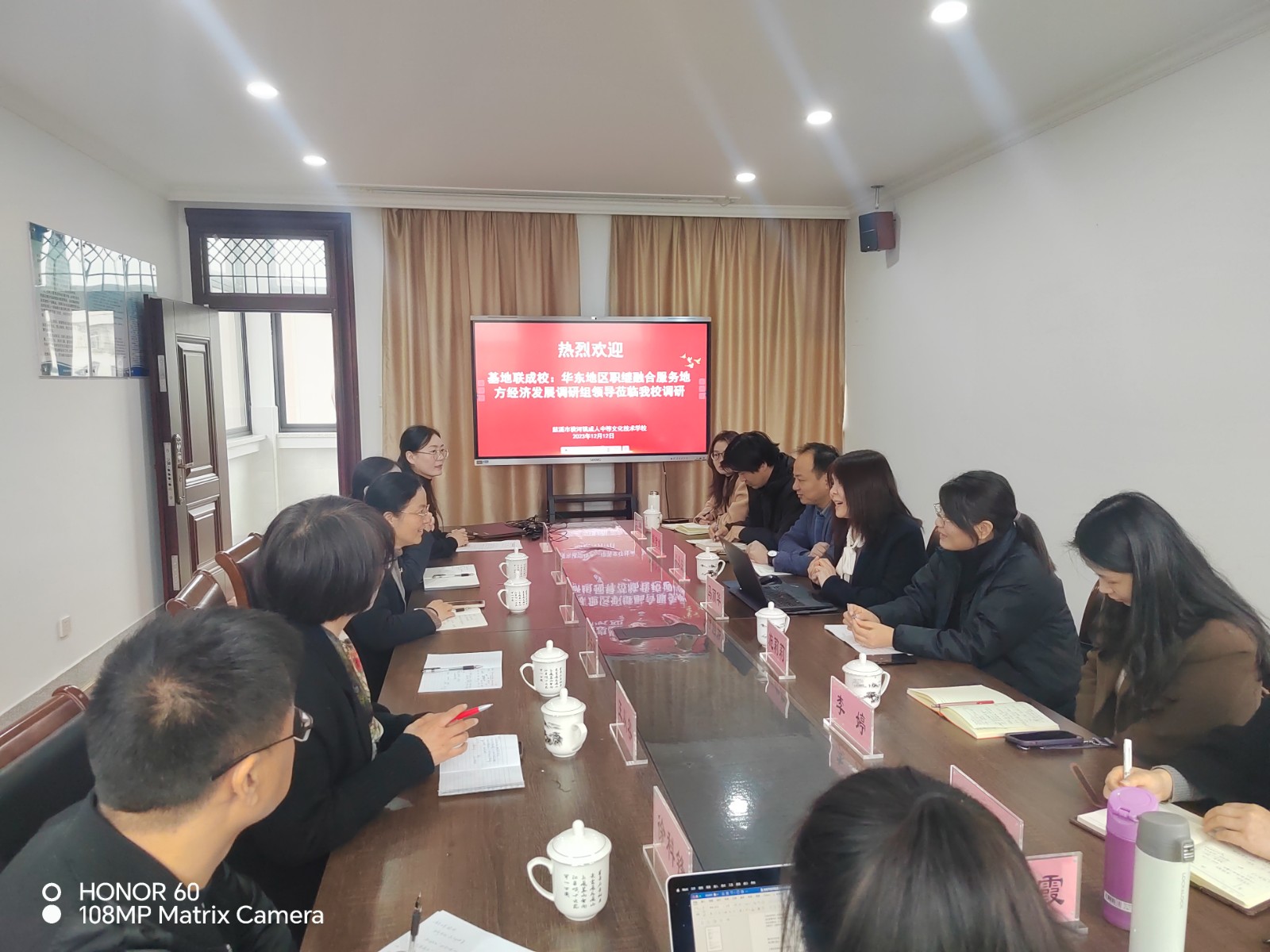 12月12日,华东师范大学、上海外国语大学教授到访我校,就“基地联成校:华东地区职继融合服务地方经济发展”开展交流研讨,此次活动也作为我校终身教育特色品牌交流推广。