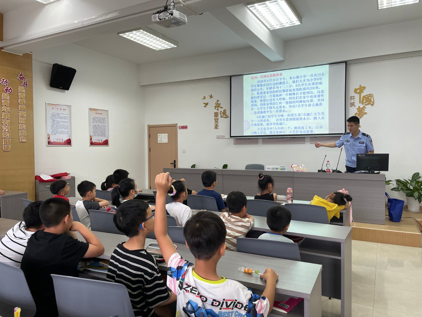 “救命啊救命啊......”暑期安全第一课,炼化社区网格邀请蛟川派出所张皓博警官,为辖区青少年开展暑期安全教育知识讲座,牢牢拧紧安全“思想阀”,减少不必要的事故发生。讲座开始前,张警官用一段“青少年落水,同伴搭救”的视频引出了今天教育的重点,让在座的青少年直观地的了解了身边的安全隐患。实际上,视频中同伴的第一反应也是大家认为的“正确做法”。本期讲座,张警官重点围绕防溺水、防火、防电等与青少年息息相关的安全方面展开,把正确的隐患处置方式教给在座的每一位青少年,增强他们的安全防患意识,不断提高应急自救的能力。