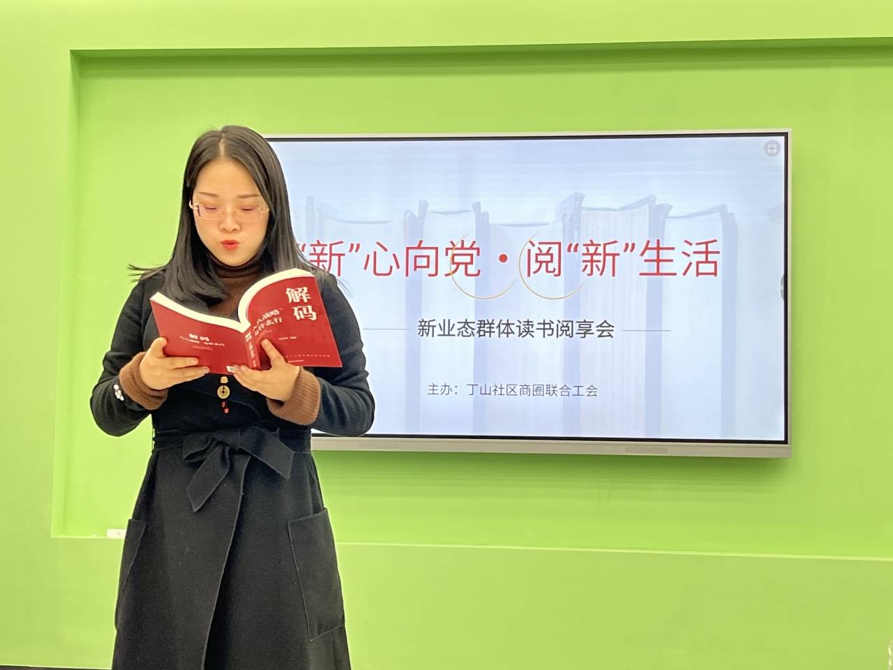 此次读书阅享会的举办,为新业态群体提供了一个学习交流的平台,在新经济连着新就业形态,新就业形态创造新经济的时代机遇里,丁山社区商圈联合工会将继续坚持党建引领,以服务需求为导向,整合资源、上下联动,推出更多暖“新”服务,不断提升新业态群体的获得感、归属感、认同感。