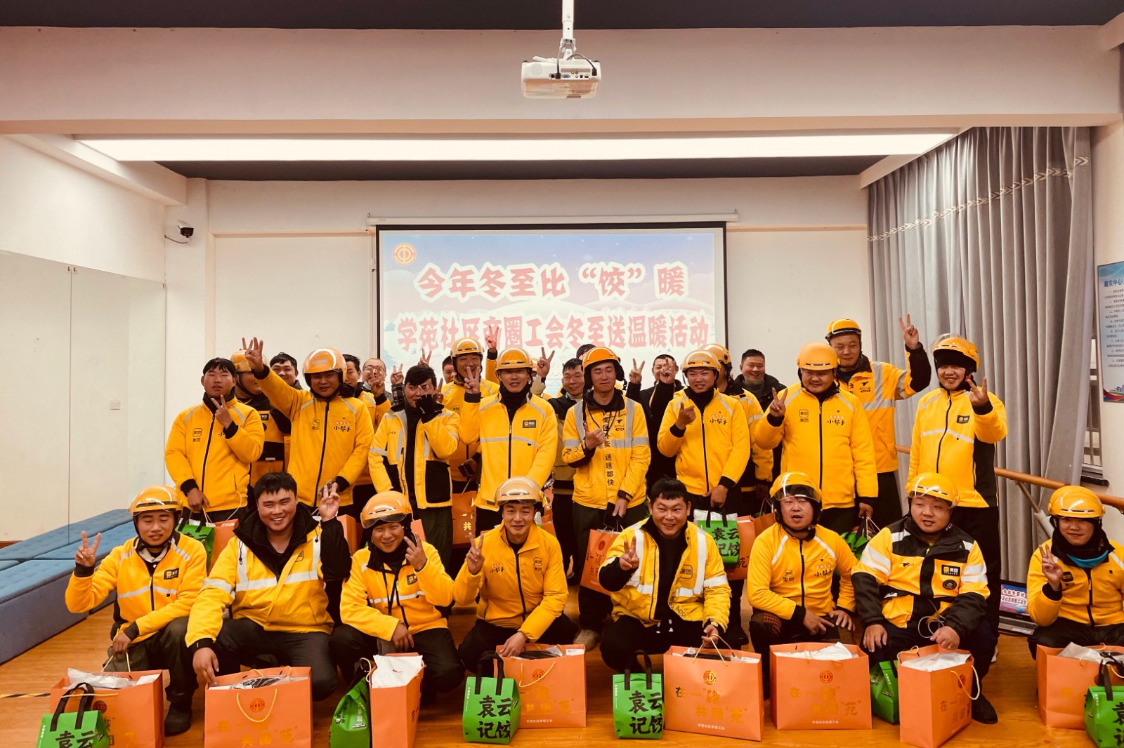 “没想到今天既有吃的也有这么多送的,谢谢你们社区。”在活动的最后,社区商圈工会还为小哥们送上了保温杯、护膝、手套、围脖等保暖礼品,送去冬至的祝福,为他们在寒冬中带去温暖。